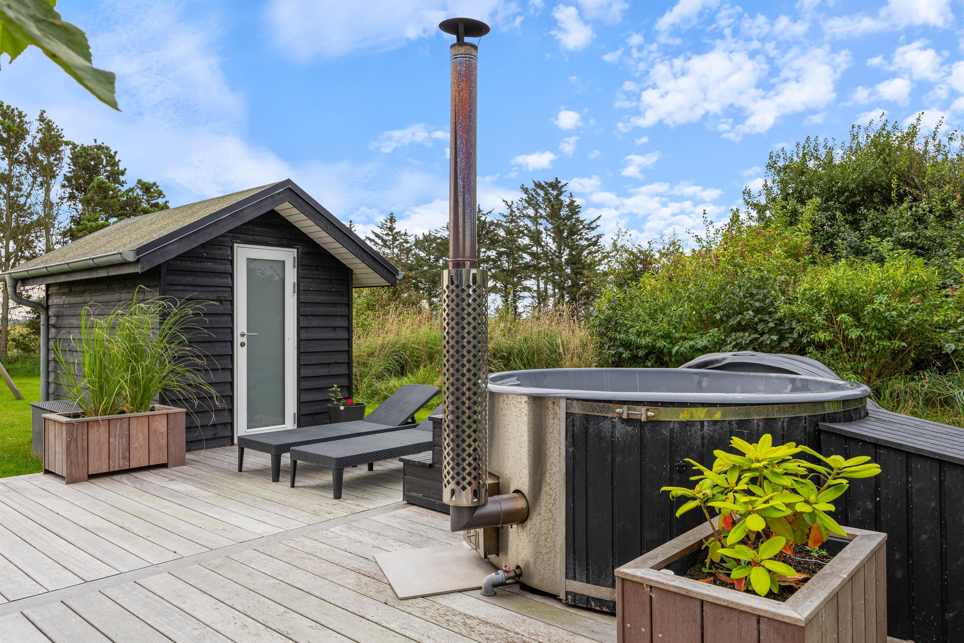Overdækket terrasse med vildmarksbad og udesauna på Nr Fjandvej 5A