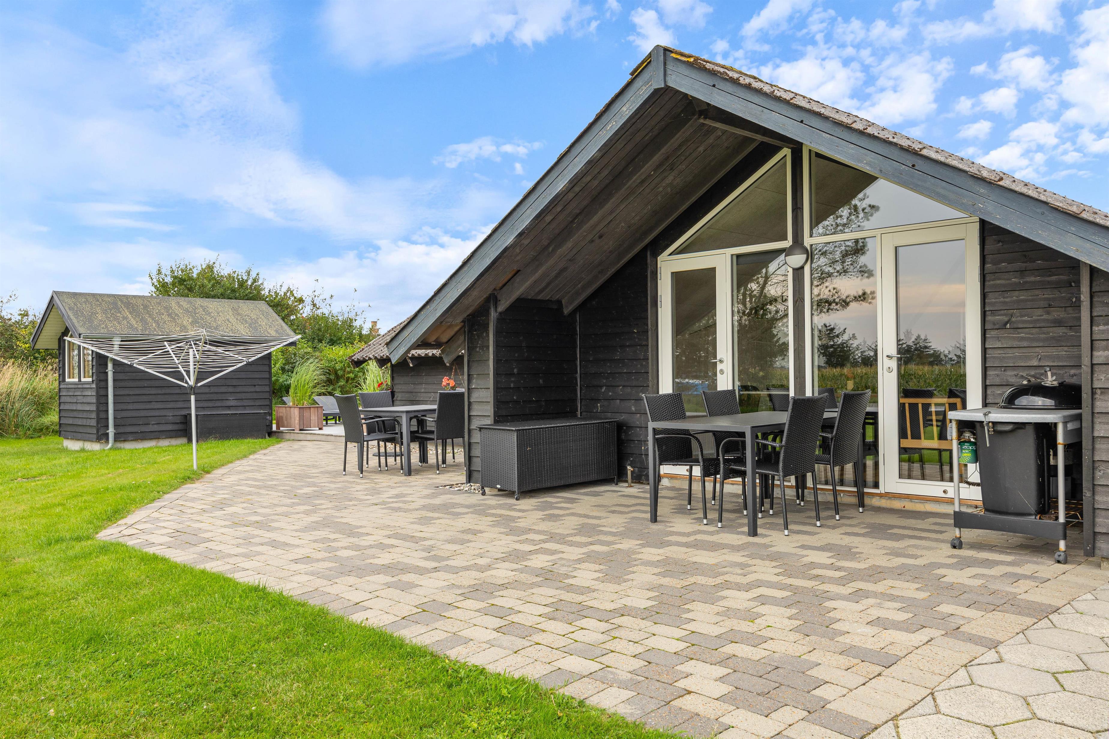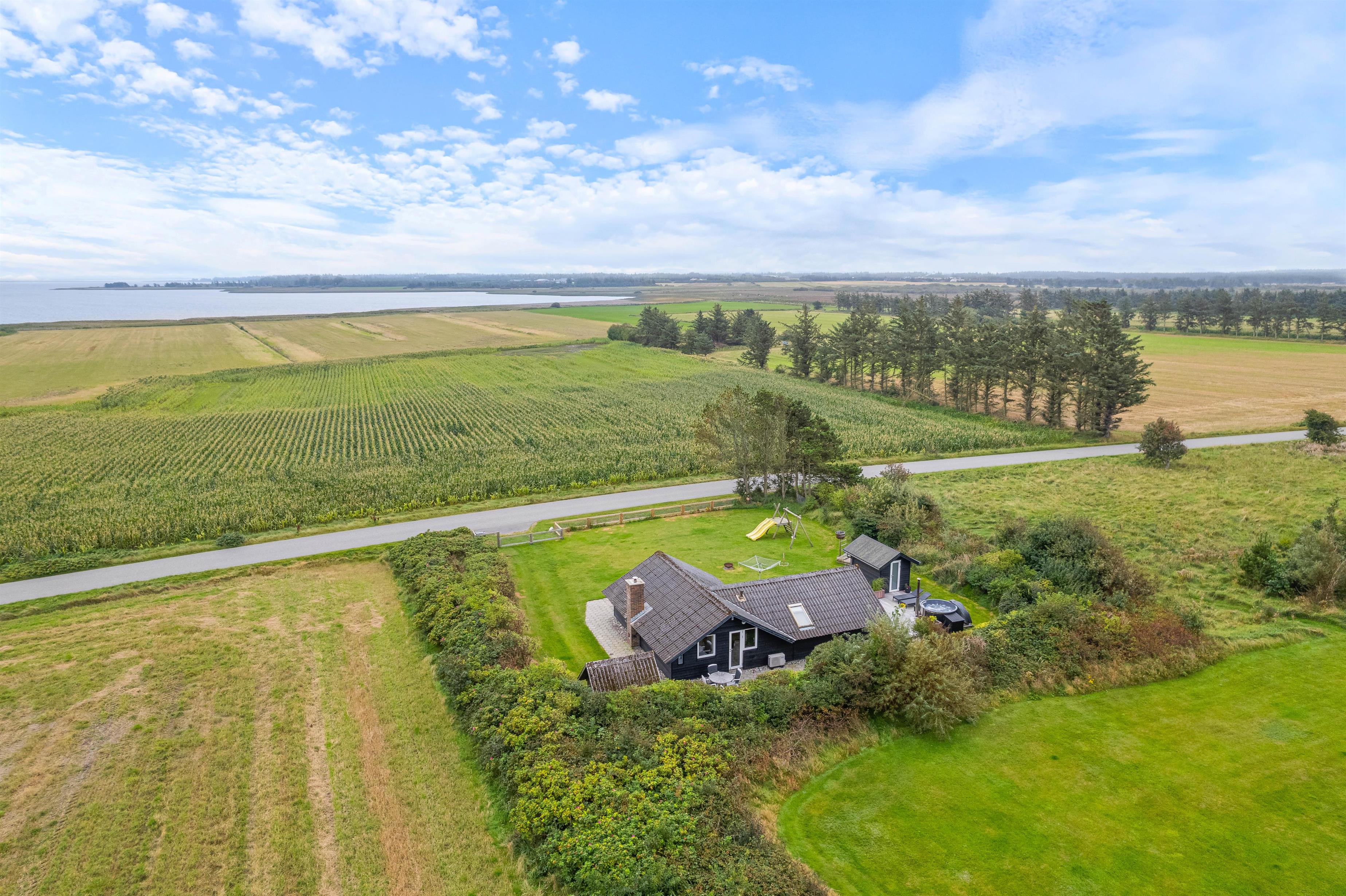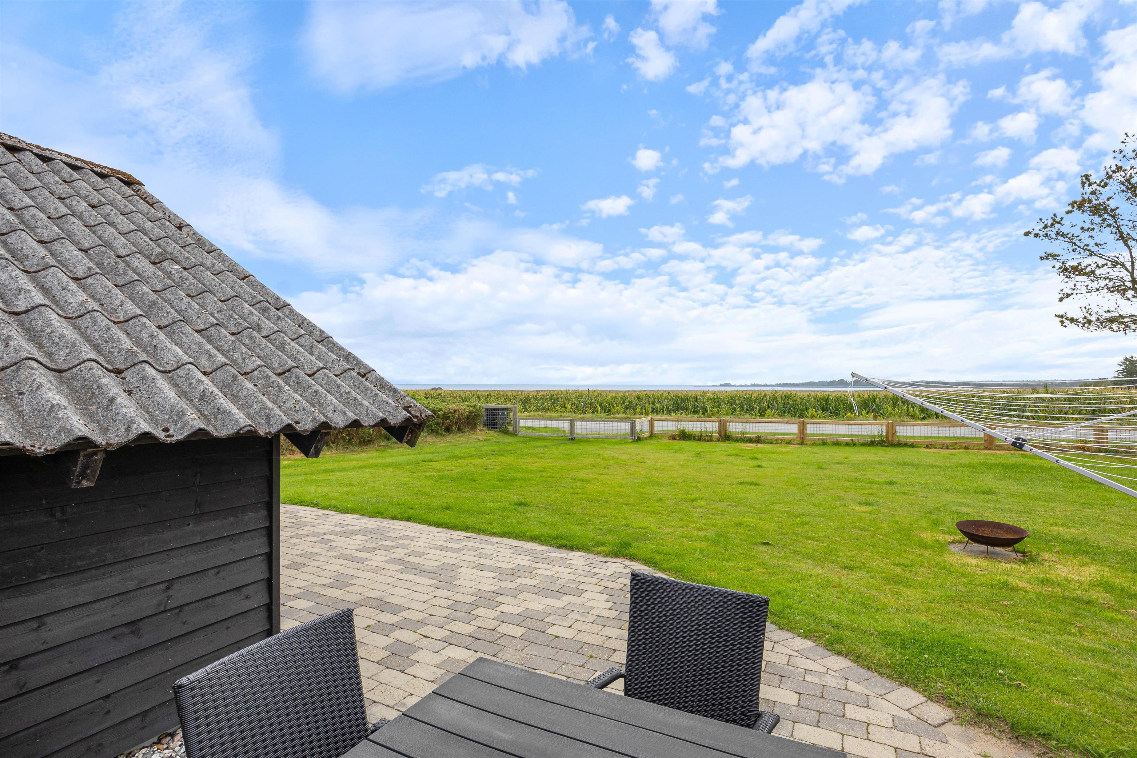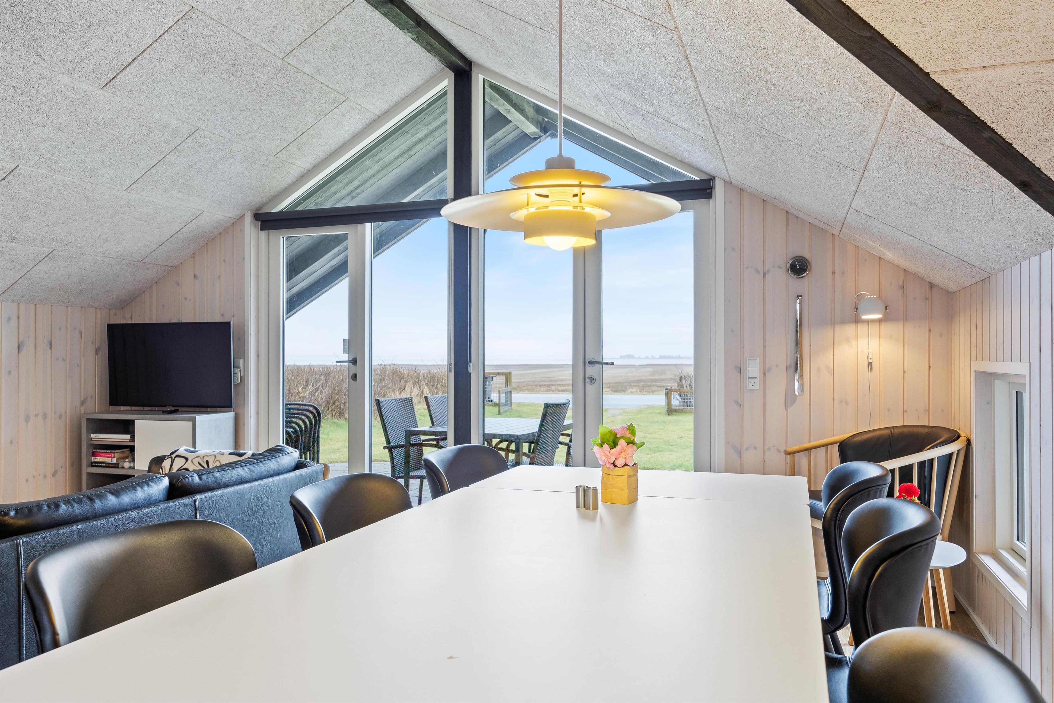 Udendørsområdet imponerer med sin overdækkede terrasse, så I kan nyde den friske Vesterhavsluft uanset vejret. Her kan I se børnene lege på legetårnet, hvor de kan klatre, rutsje og gynge. Her kan de virkelig slå sig løs. Jeres 2 hunde vil også nyde den store have. Fra feriehuset har I en fantastisk panoramaudsigt over landskabet med Nissum Fjord i baggrunden.