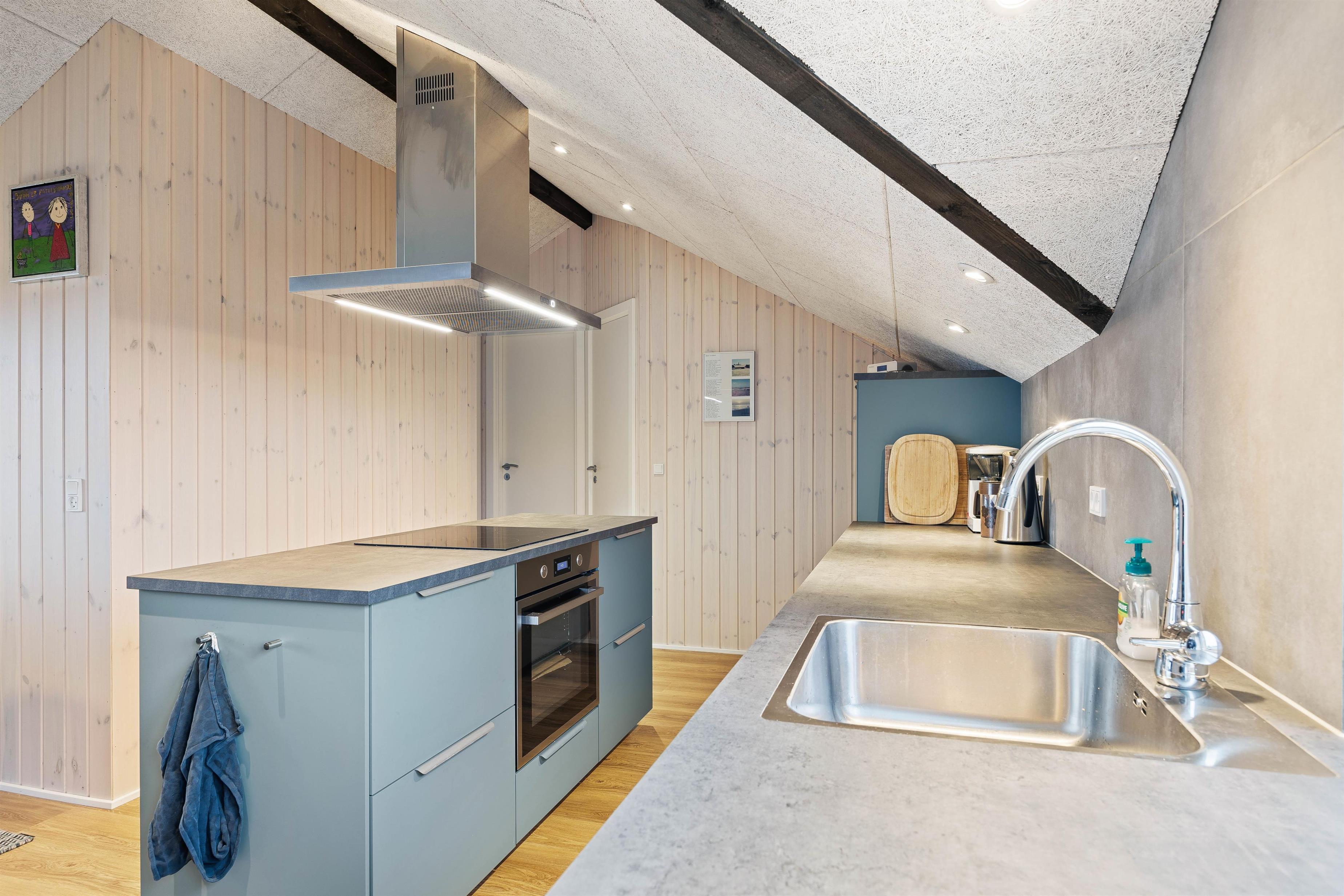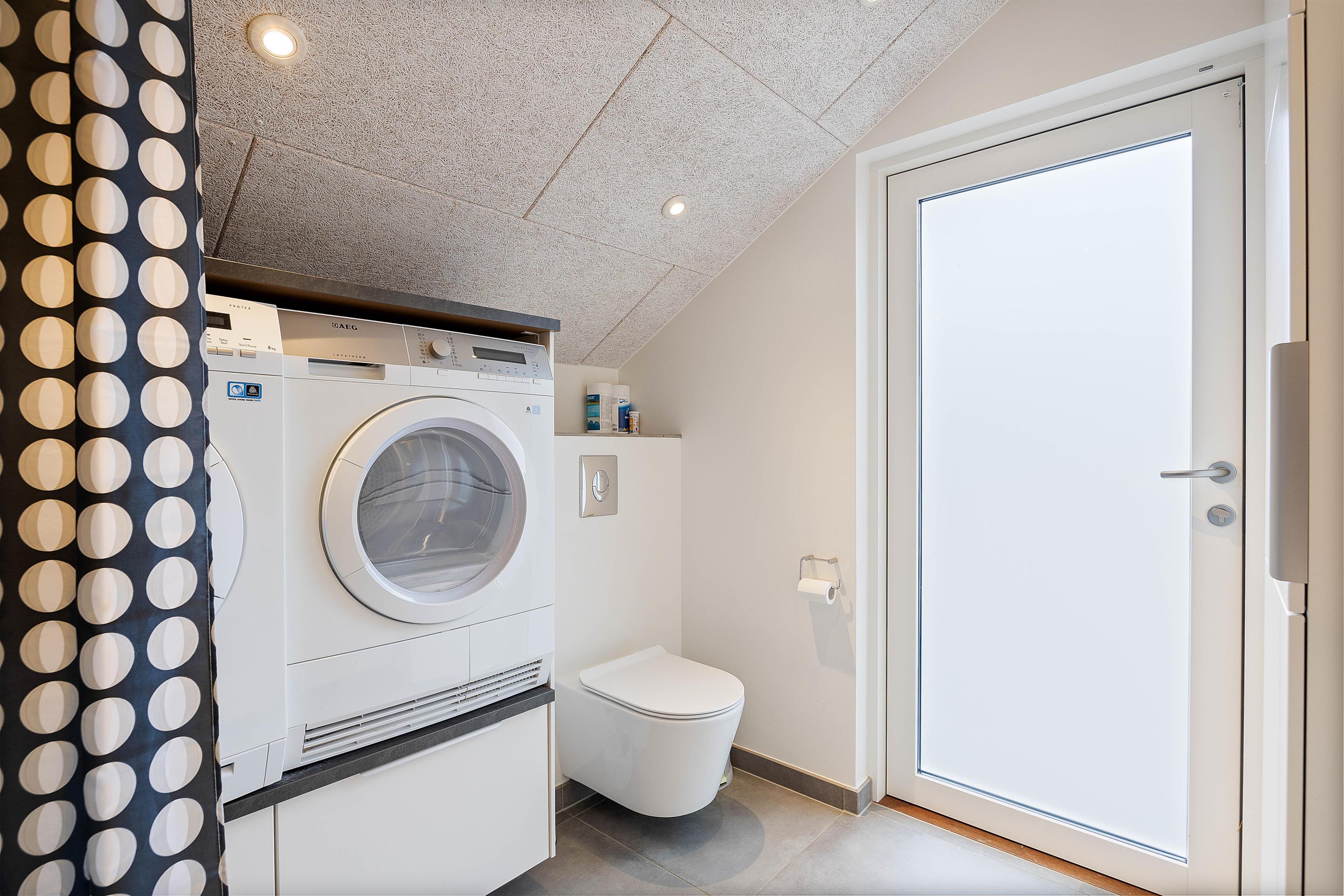 Brændeovnen sørger for hygge, når vejret ikke spiller med. Det behagelige indeklima sikres af en energibesparende luft-til-luft-varmepumpe. Badeværelset er udstyret med gulvvarme, så I undgår kolde fødder om morgenen. Der er også vaskemaskine og tørretumbler, så bagagen ikke optager for meget plads i bilen.