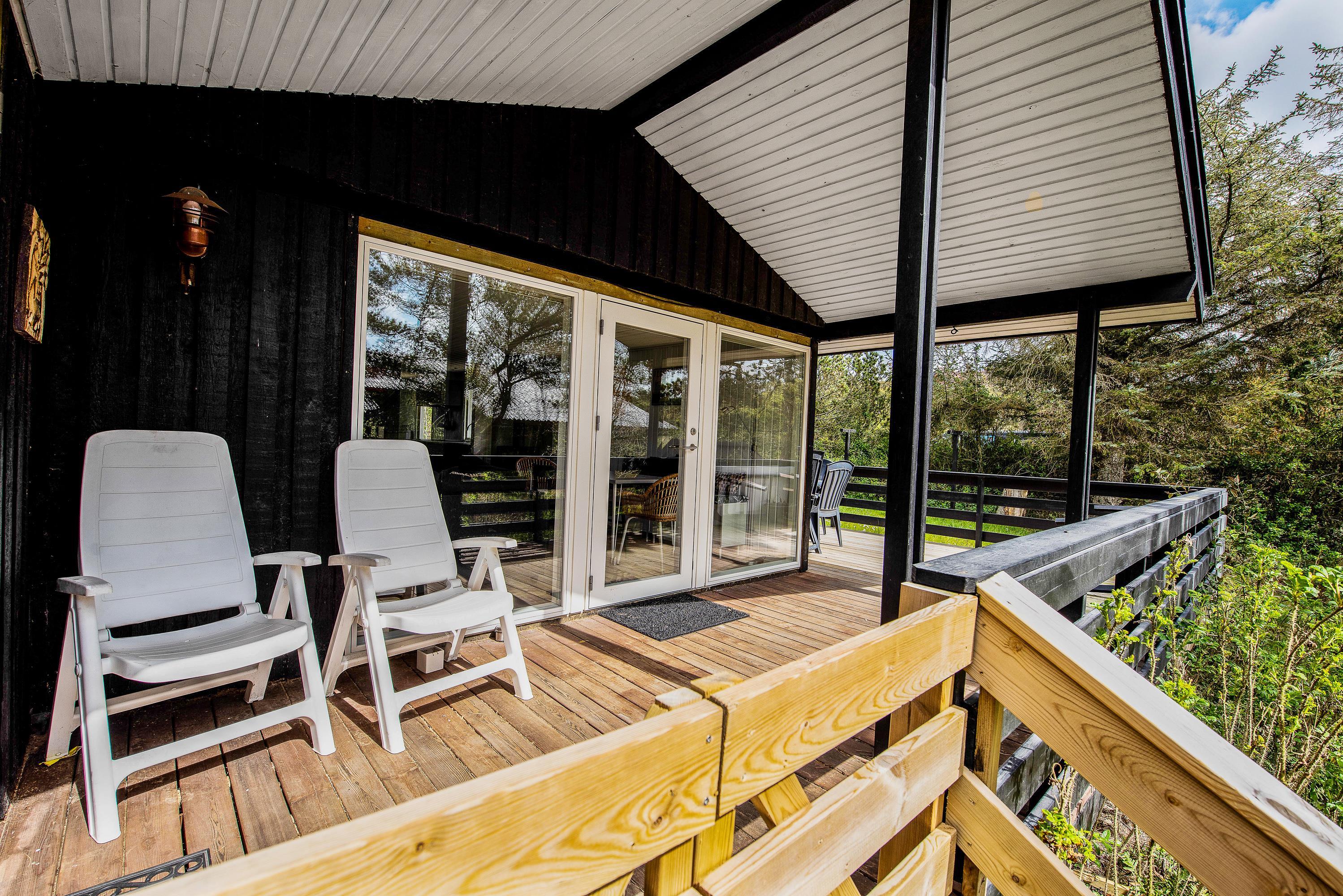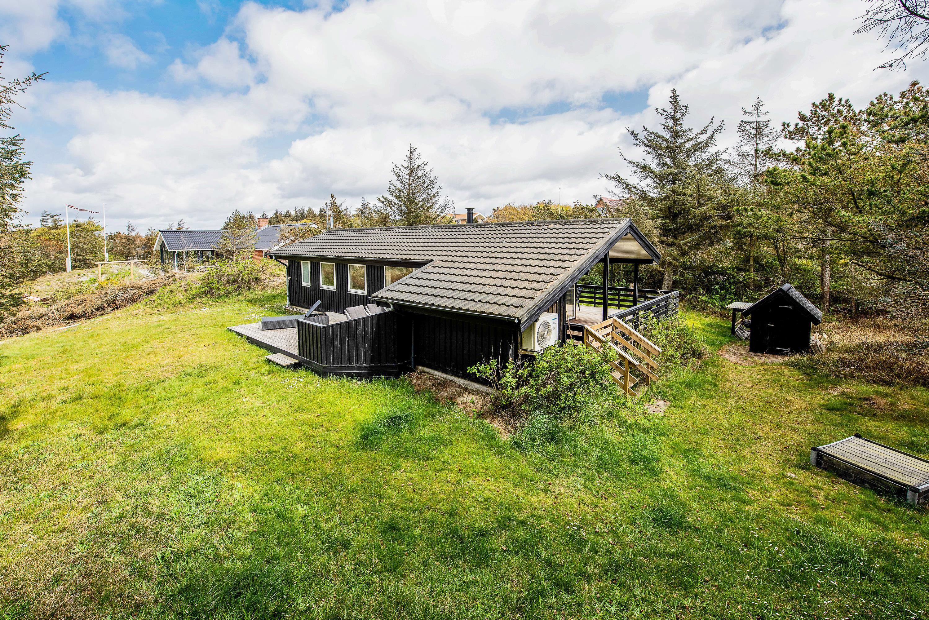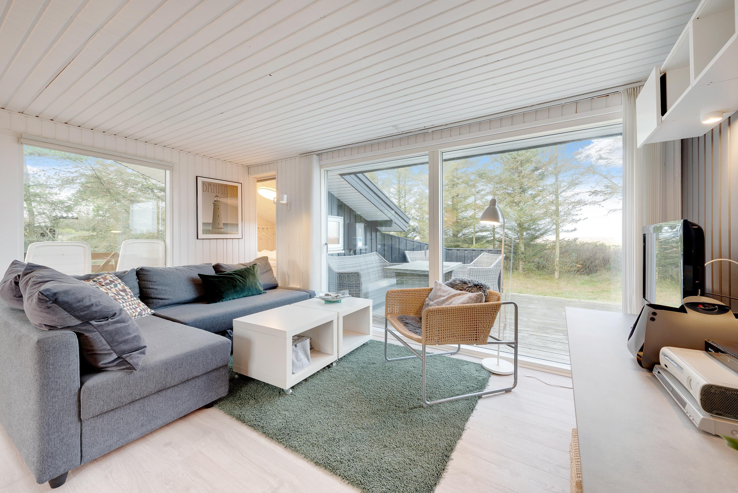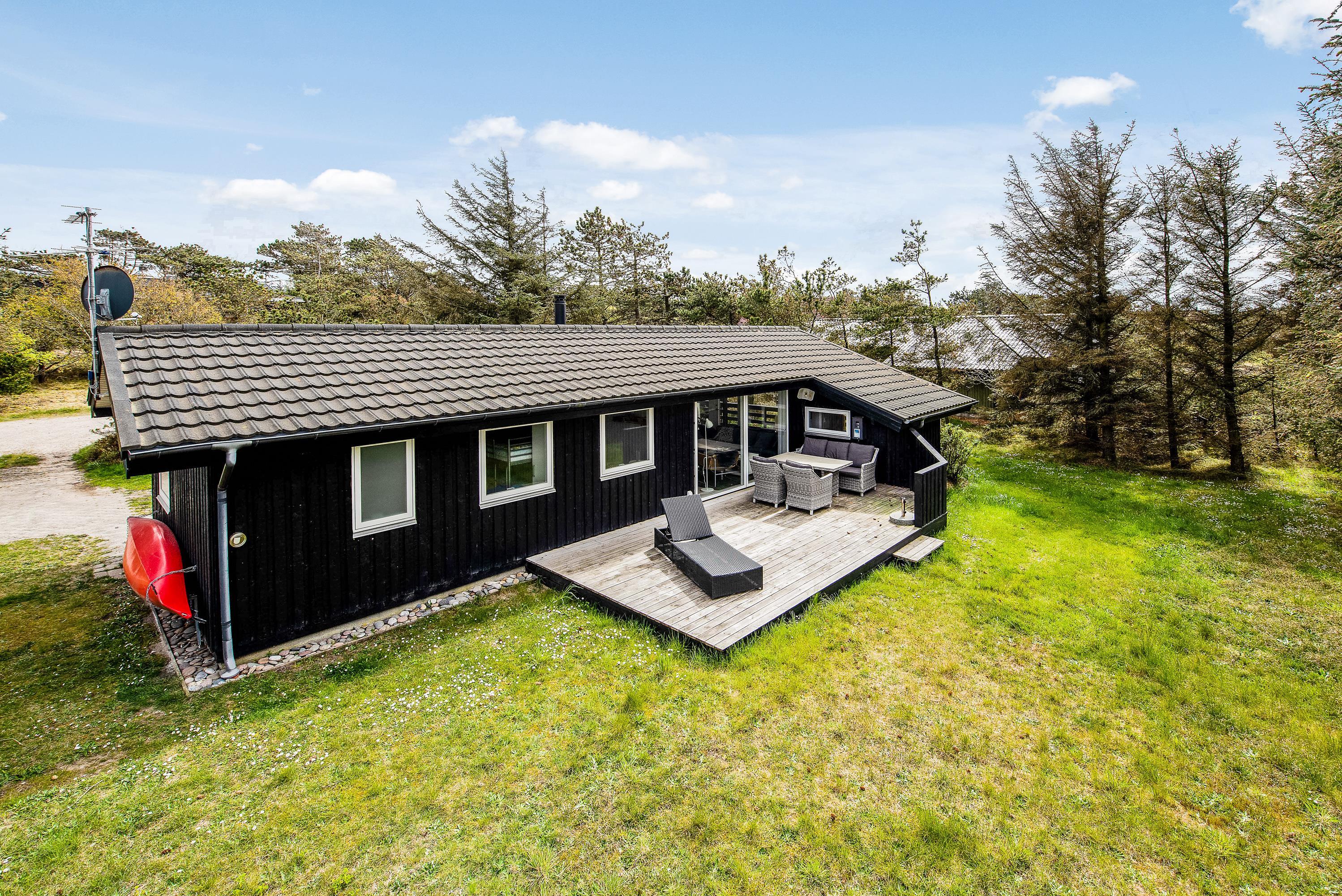 Dette charmerende træferiehus byder jer straks velkommen i rolige og grønne omgivelser. Indenfor mødes I af en personlig og hyggelig indretning, hvor små detaljer og store vinduer skaber en lys og indbydende atmosfære med smuk udsigt til naturen omkring jer.