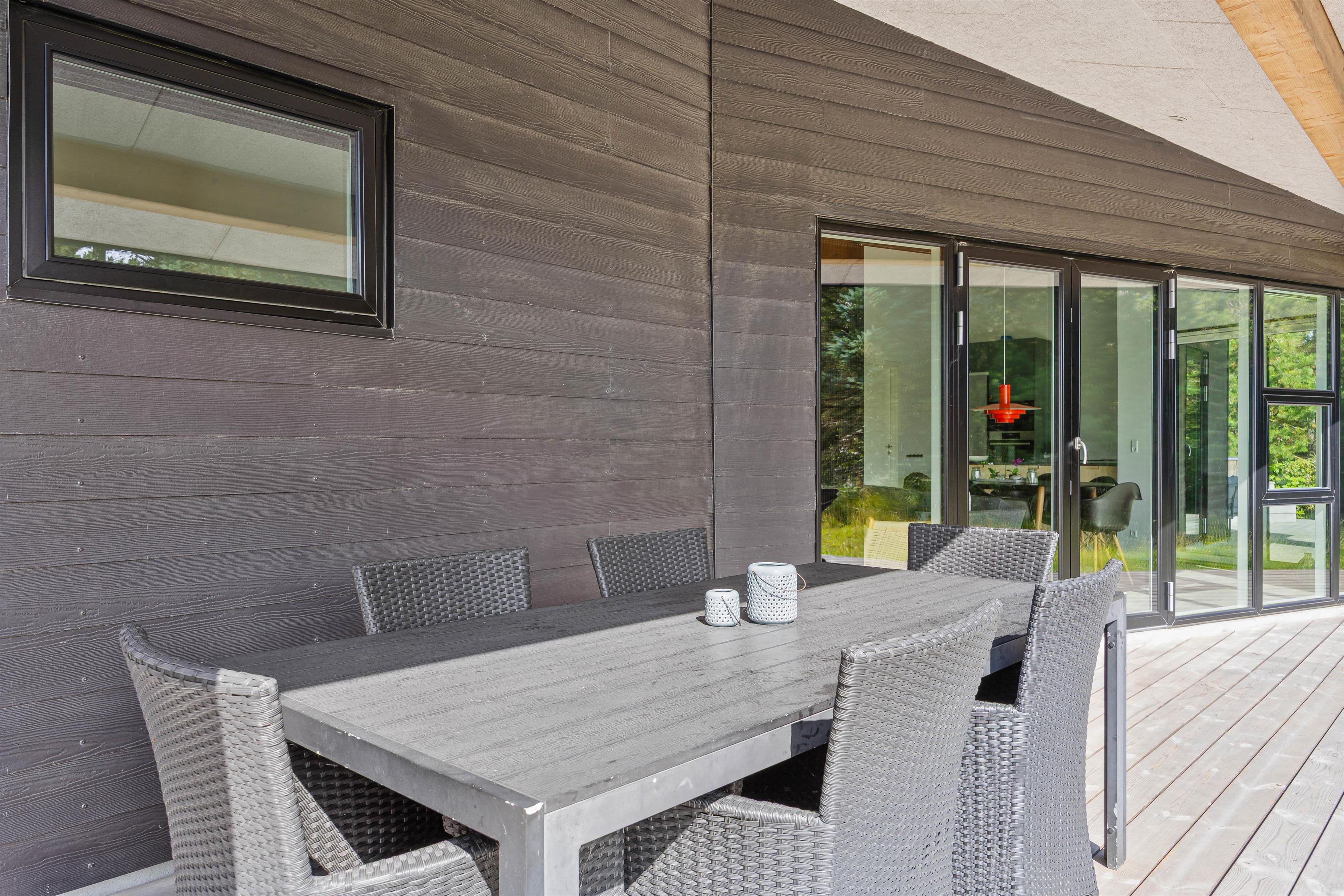 Sommerhuset byder på et væld af udendørs faciliteter, der gør det til et ideelt valg for naturelskere og alle, der sætter pris på ro og afslapning i smukke omgivelser. På den 1.200 m² store naturgrund finder I både en åben og en afskærmet terrasse samt en overdækket terrasse, så I kan nyde udelivet uanset vind og vejr.