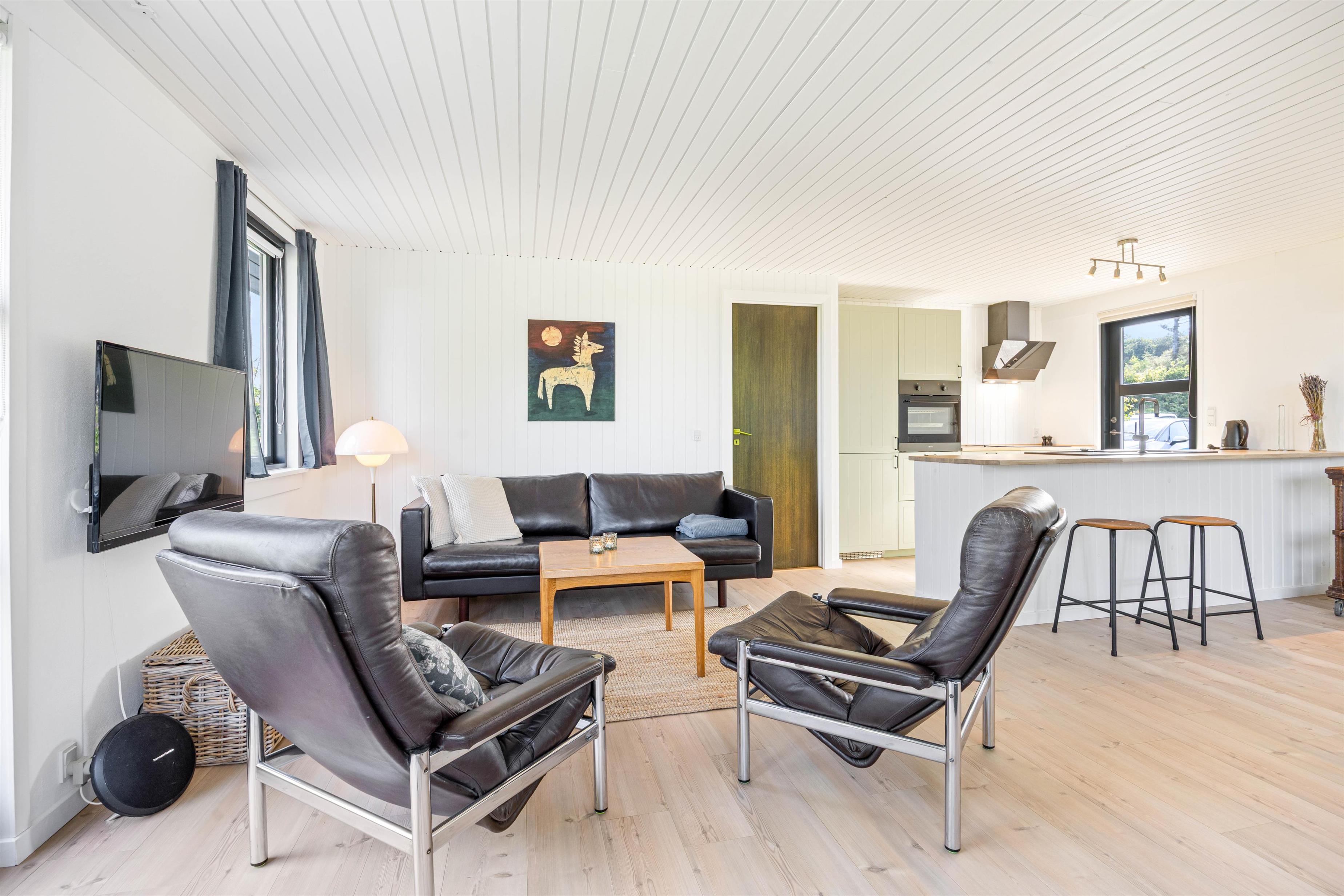 Køkkenet er moderne og funktionelt med bl.a. opvaskemaskine, så I slipper for opvasken efter maden. Spiseområdet indbyder til hyggelige måltider, mens sofaområdet er det perfekte sted at slappe af med en god bog eller film. Der er en chromecast til rådighed, så I selv kan streame netop de film, som I ønsker at se, hvis I har nogle streamningstjenester.