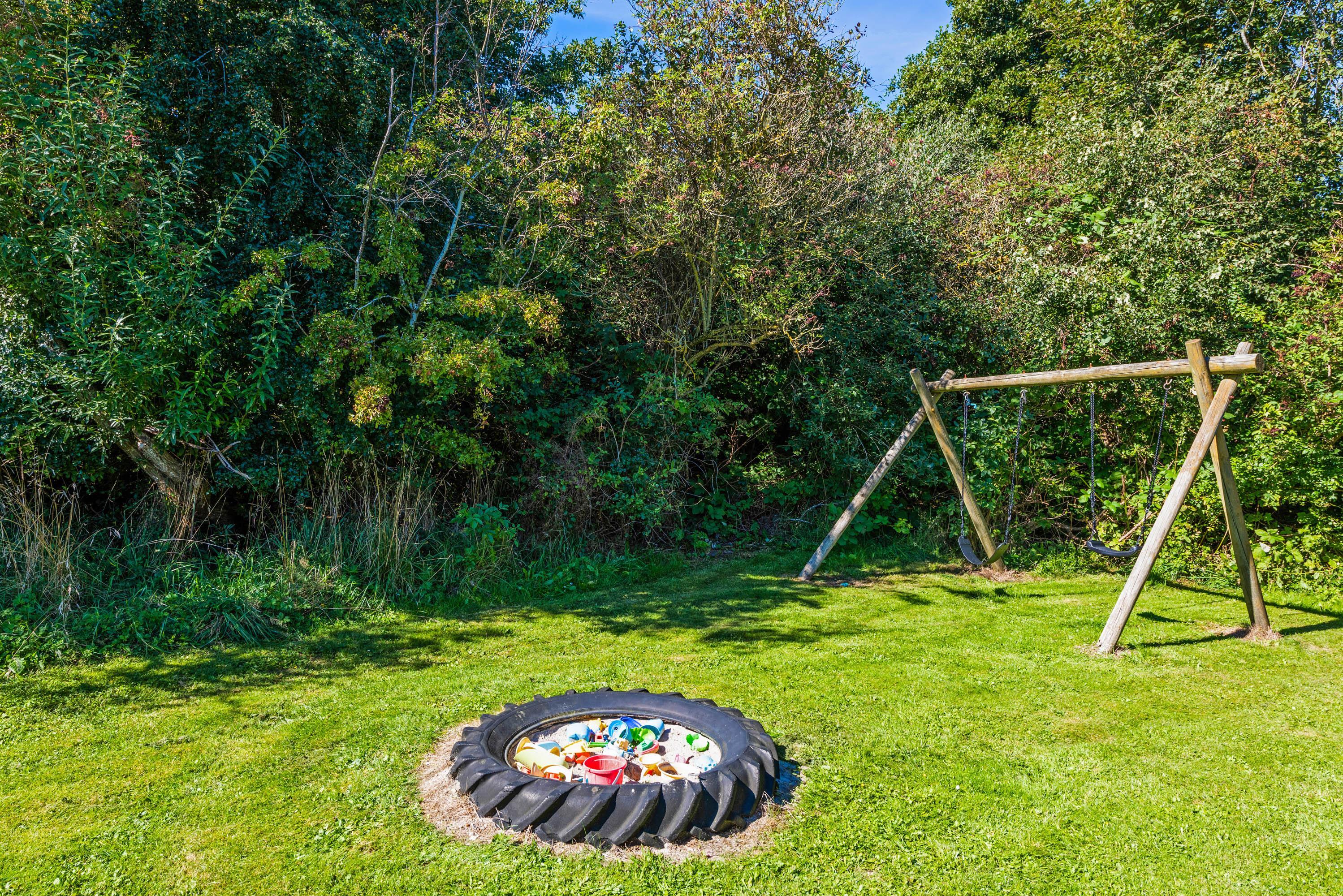 Sommerhuset ligger på en stor grund på mere end 4.000 m2. Her har I masser af plads at boltre jer på, og der er mange muligheder i den store have. Til børnene er der både en sandkasse og et gyngestativ, som de kan få masser af glæde af under ferien. I haven finder I også 2 fodboldmål, og hvorfor så ikke få gang i en fodboldturnering?