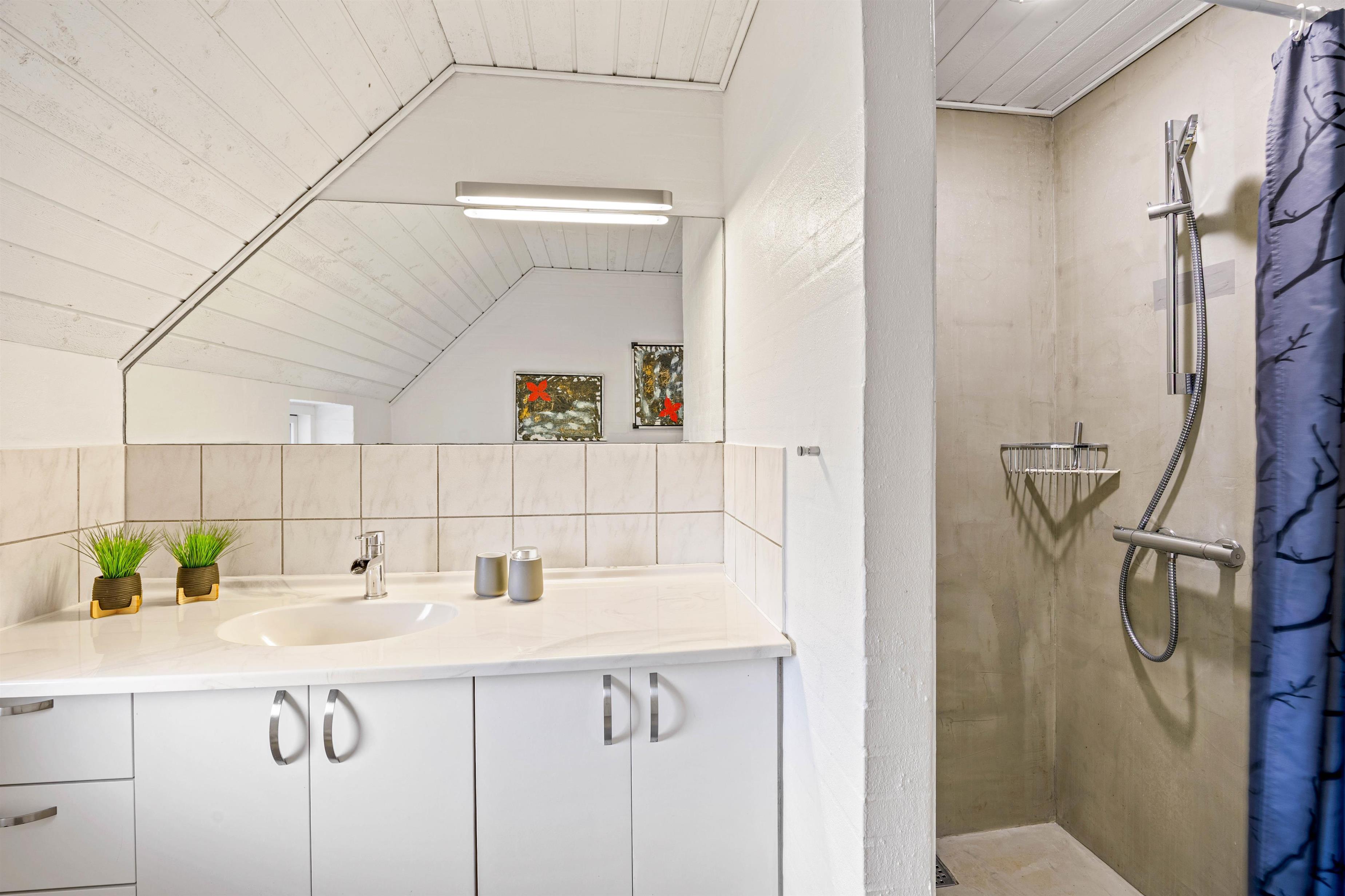Det helt store højdepunkt i sommerhuset på Sdr. Fjandvej 36 er uden tvivl poolområdet. Her venter jer en 25 m2 stor swimmingpool med rutsjebane, hvor voksne såvel som børn kan slå sig løs i en masse forskellige vandlege. Skulle I få brug for en pause, kan I sætte jer til rette i loungemøblerne, inden legene igen fortsætter.
