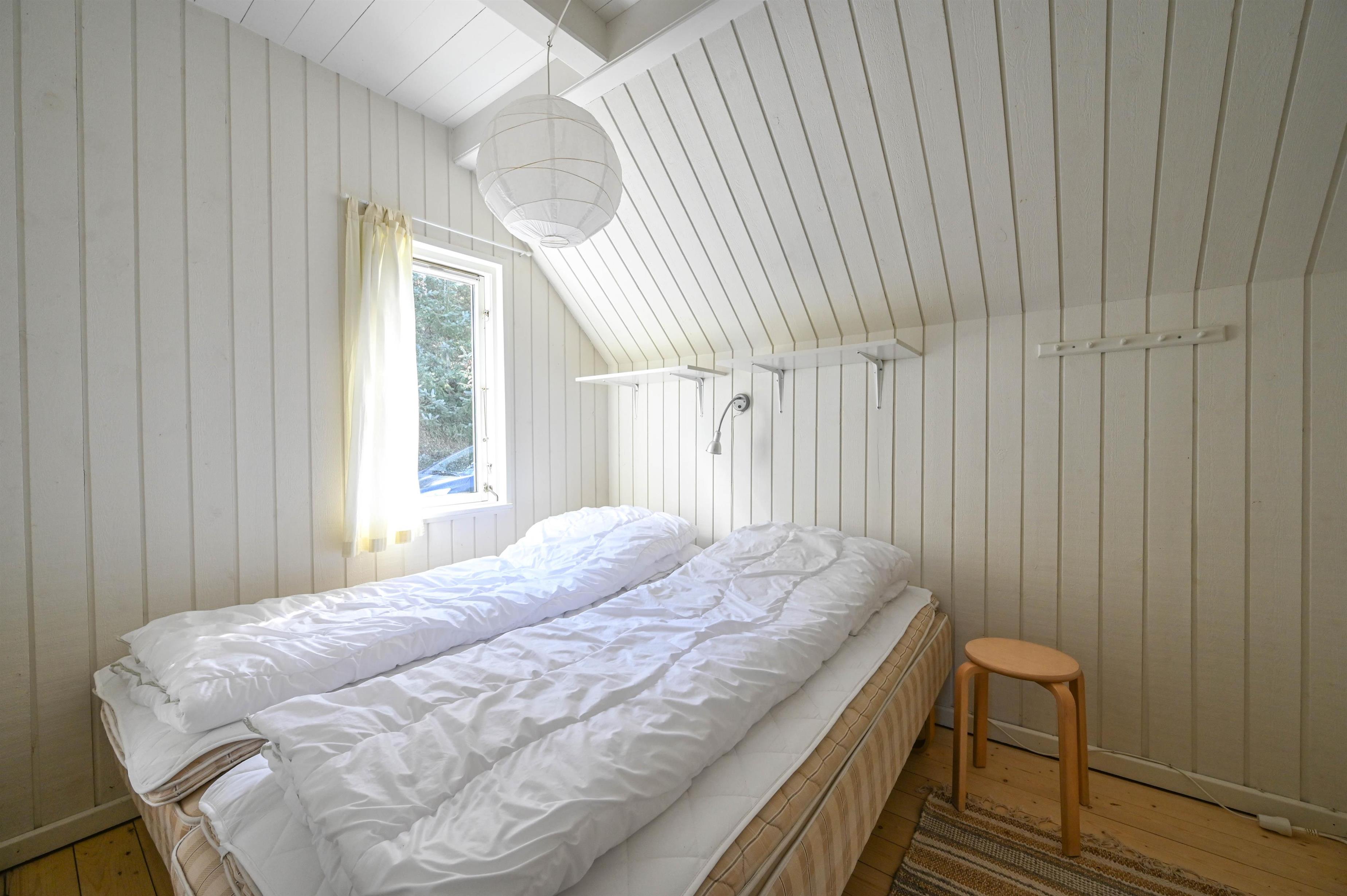 Huset har et badeværelse med bruseniche, to gode soveværelser med dobbeltsenge samt et mindre værelse – ideelt til børn eller som ekstra rum til afslapning.