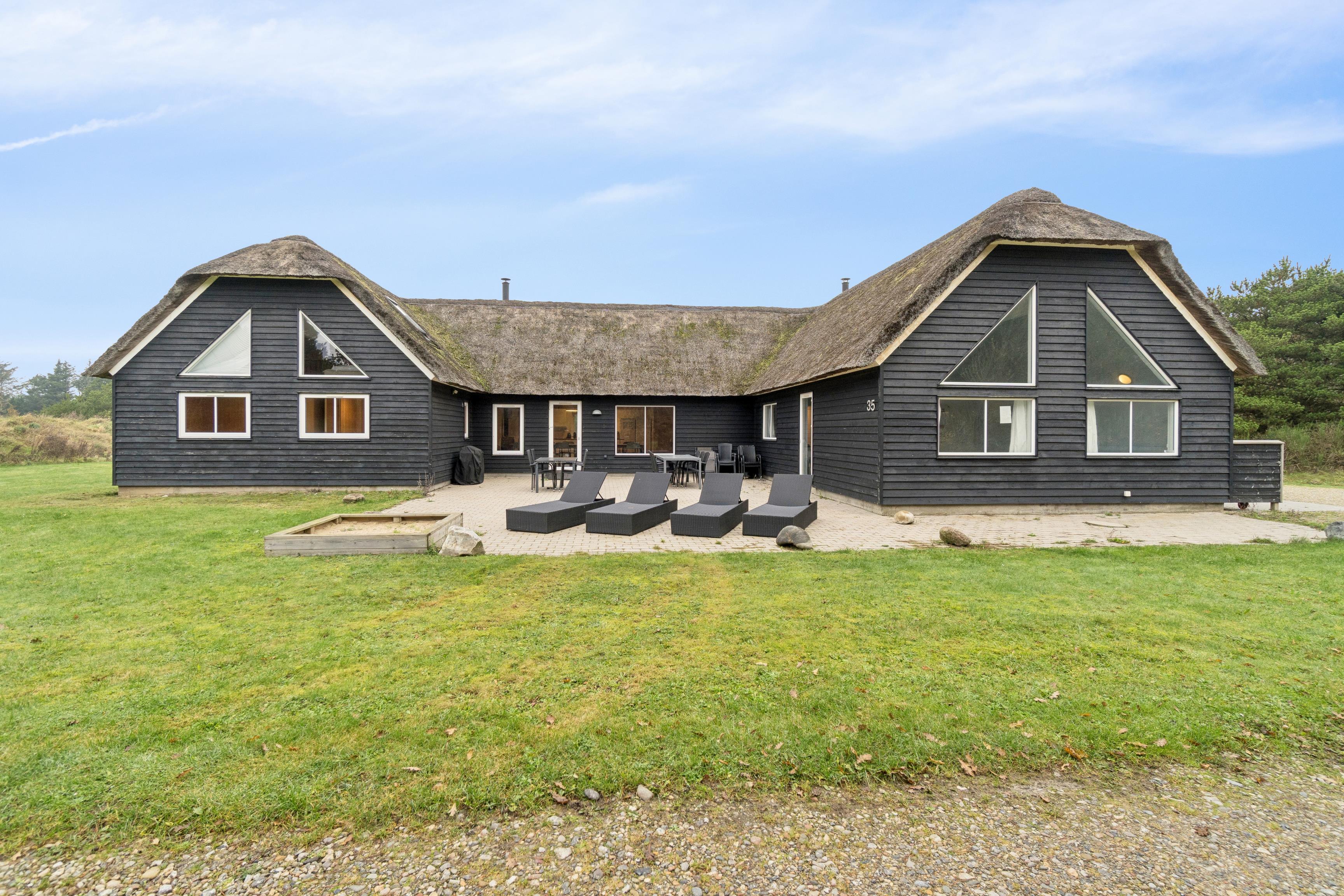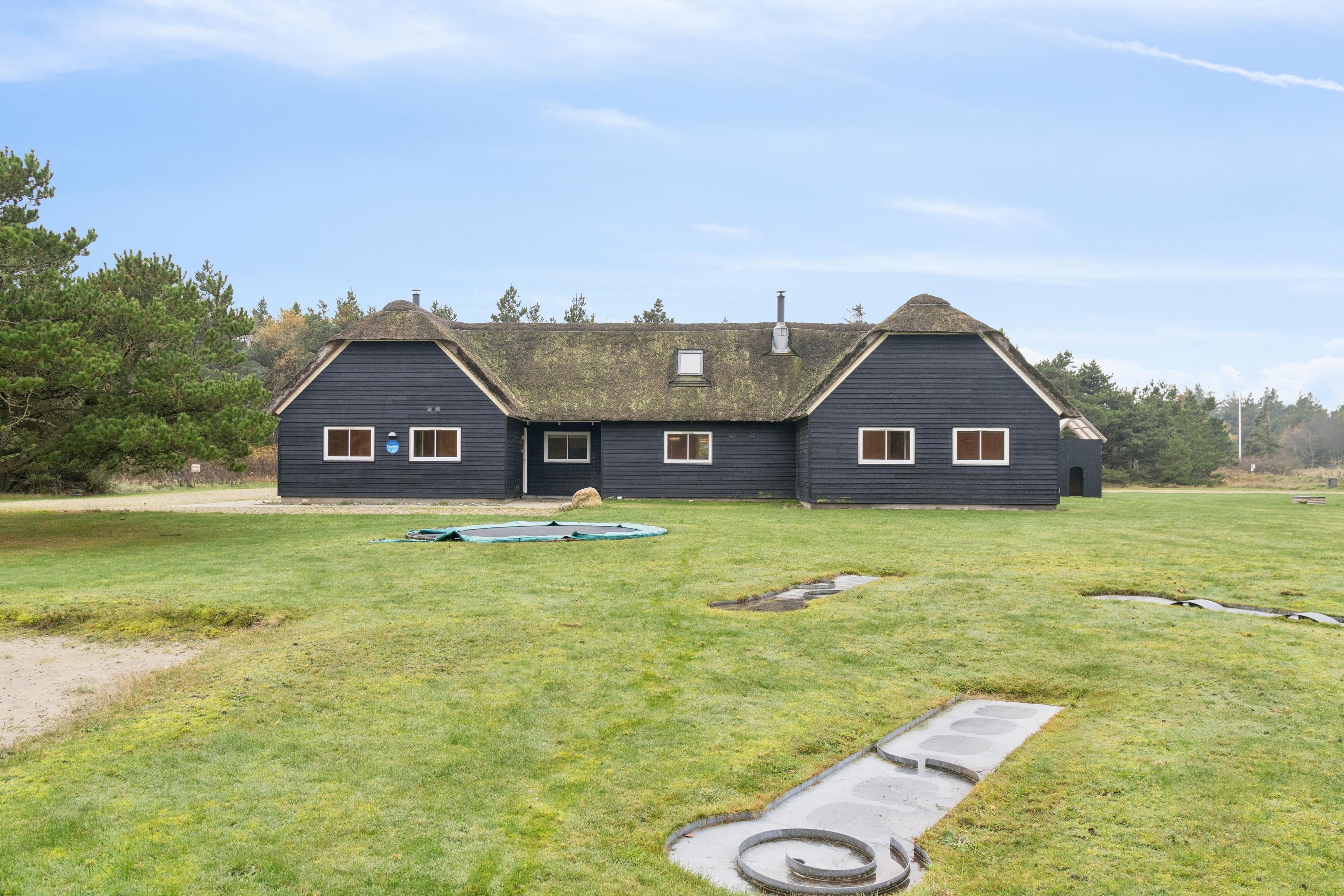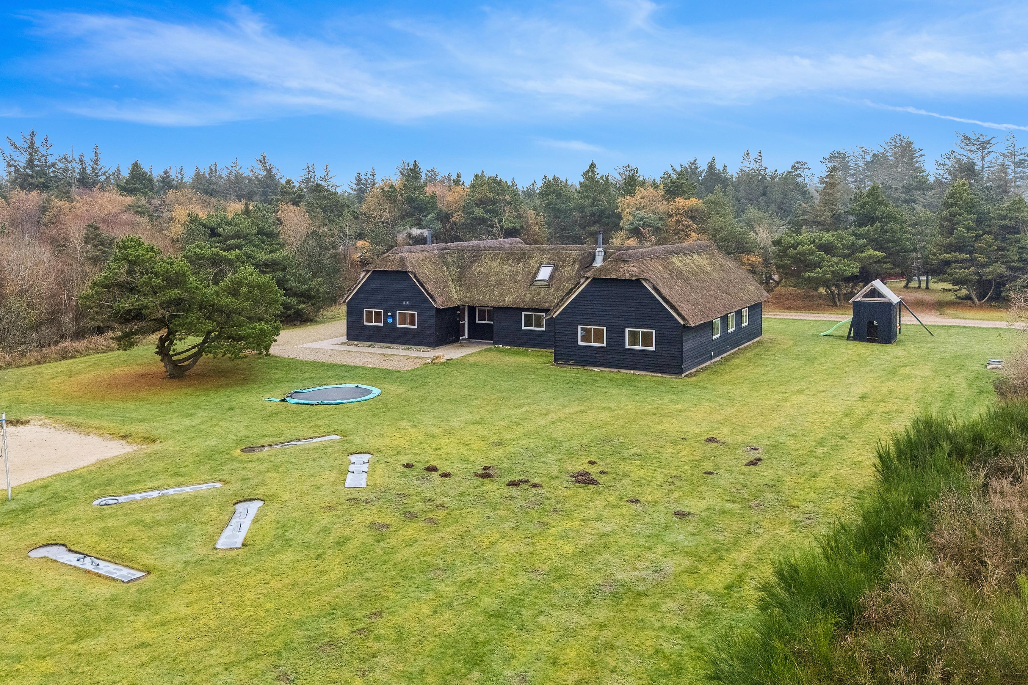 Illeborgvej 35 Fjand. Kun 1200 meter fra den jyske vestkyst ligger dette imponerende feriehus, opført på en 5700 m² stor naturgrund med masser af plads til både afslapning og aktiviteter for hele familien.