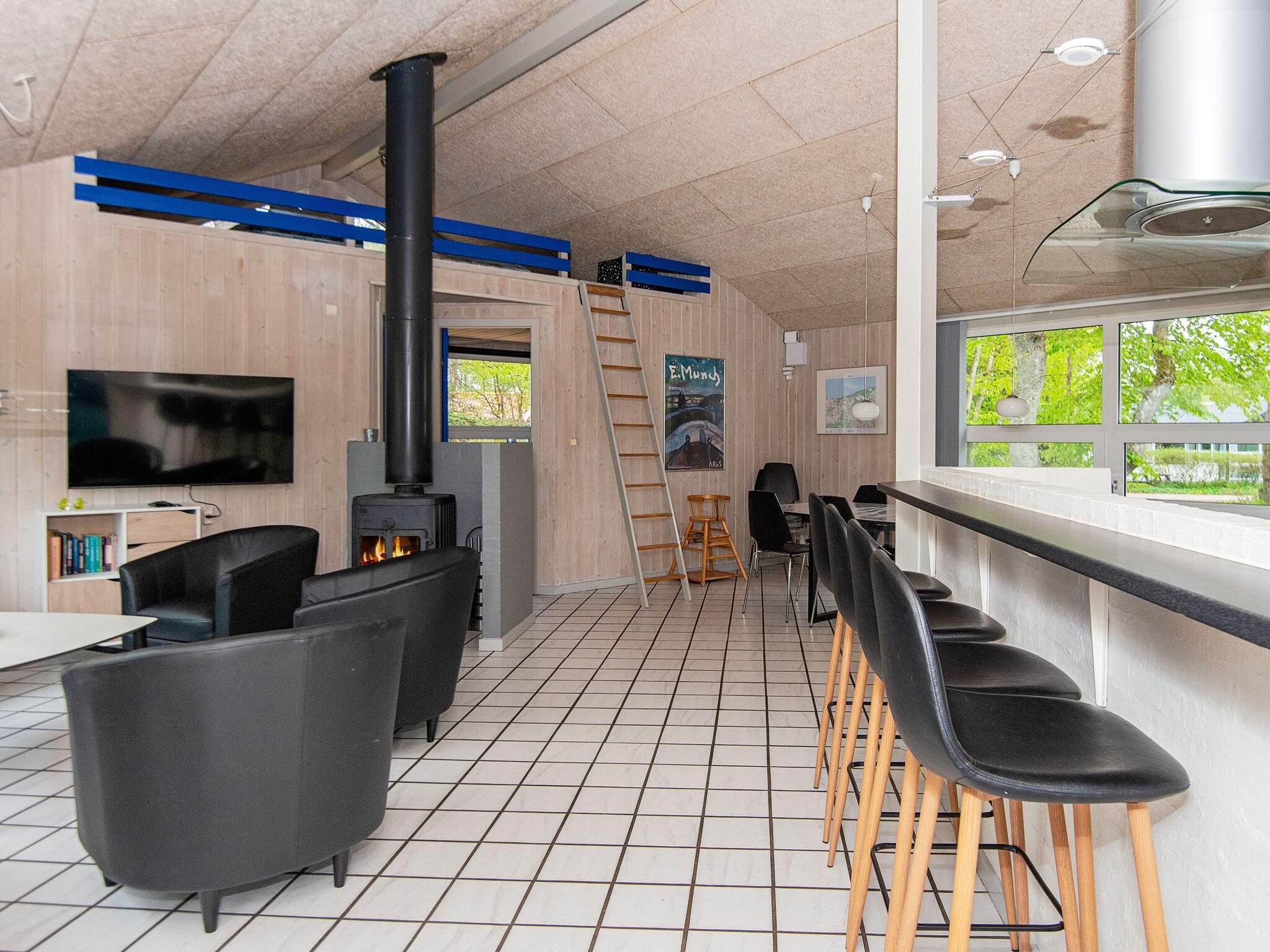 Fra køkkenet er der udsigt til poolafdelingen, så I kan holde øje med børnene. Opholdsstuen indeholder brændeovn, stereoanlæg, fladskærms-tv (parabol med digital modtager). Derudover er der barneseng og høj stol.