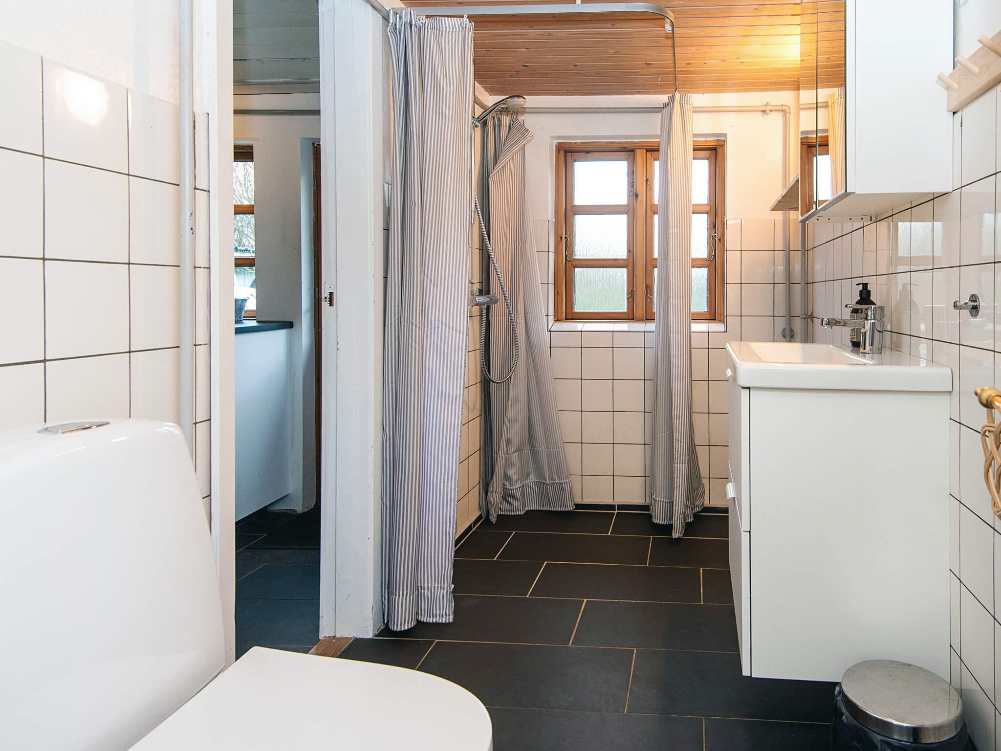 Badeværelser: Huset har to badeværelser, begge udstyret med toilet, håndvask og bruser, hvilket sikrer praktisk komfort for alle gæster.