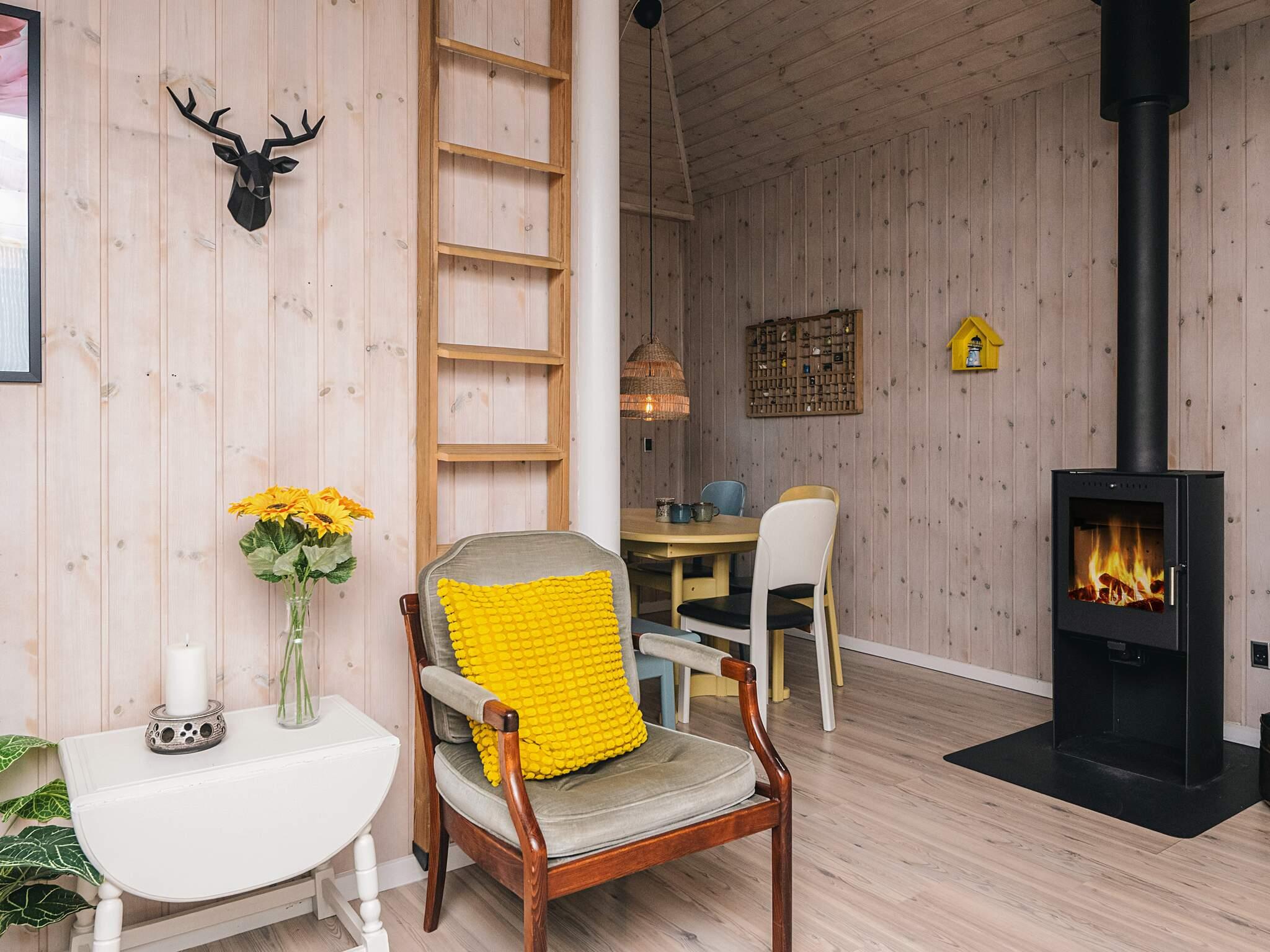 Dette charmerende lille hus ligger på en stille vej i et sommerhusområde, med en fin have og en dejlig terrasse hvor solen står højt hele dagen. Skulle vejret svigte er der også en overdækket terrasse. Inde i huset er der et badeværelse med spabad og sauna, 2 gode soverum, 1 hems med fjernsyn og plads til 2 personer, et stort køkken alrum med en skøn spisekrog og en hyggelig sofagruppe. Huset opvarmes med varmepumpe og brændeovn til de kolde vinteraftener. Der er kort til både strand, købmand og restauranter, så huset ligger helt perfekt til en skøn ferie i Fjellerup.