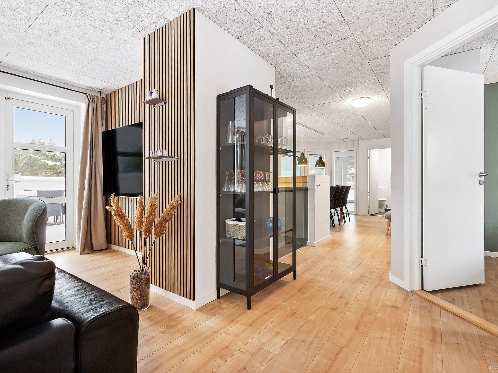 Udendørs finder I hele tre lækre terrasser, hvoraf nogle er delvist overdækkede – perfekte til både morgenkaffe, solbadning og hyggelige grillmiddage. Under den ene overdækning er der indrettet en stemningsfuld bar med loungeområde, hvor I kan samles til afslappede stunder. Der er desuden en indbydende udespa klar, som sætter prikken over i’et på ferieoplevelsen. Haven er lukket, så børnene trygt kan lege eller hoppe på trampolinen, mens de voksne nyder ferien i fredelige omgivelser.