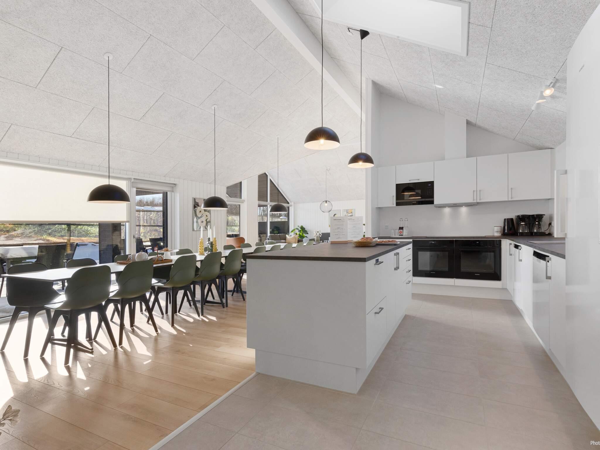 Det åbne XL-køkken er fuldt udstyret til større madlavningsprojekter, her er 2 køleskabe, 2 ovne og 2 opvaskemaskiner osv. Køkken-alrummet indbyder til fælles madlavning og lange middage. Spiseområdet har plads til alle, så måltiderne kan nydes i fællesskab.