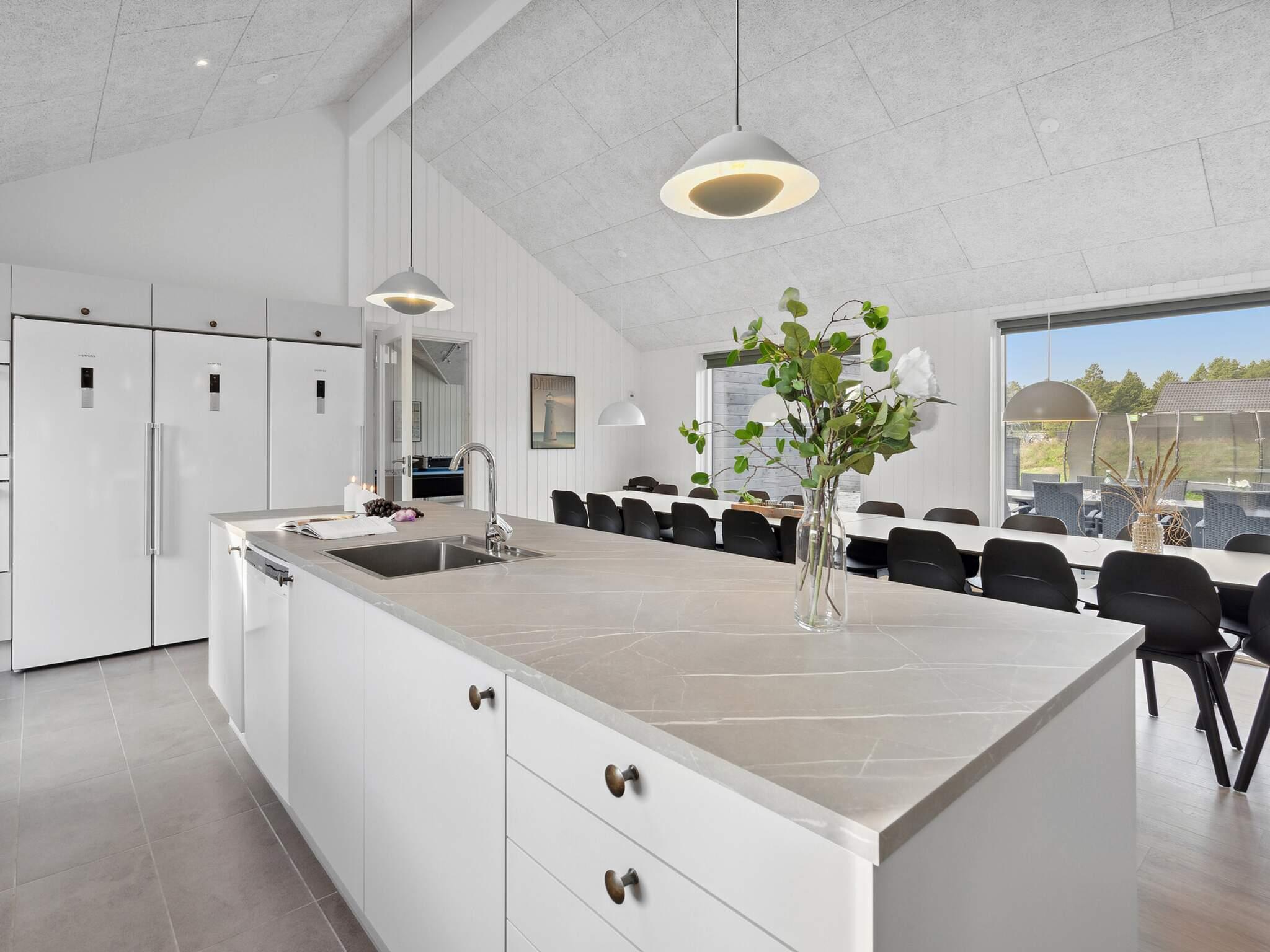 Midtpunktet i huset er det rummelige XL-køkken med 2 ovne, 2 opvaskemaskiner og 2 køleskabe, hvor I kan samles om madlavning og måltider ved det lange spisebord. Efterfølgende er sofaområdet det oplagte sted til en hyggelig aften med film eller spil.