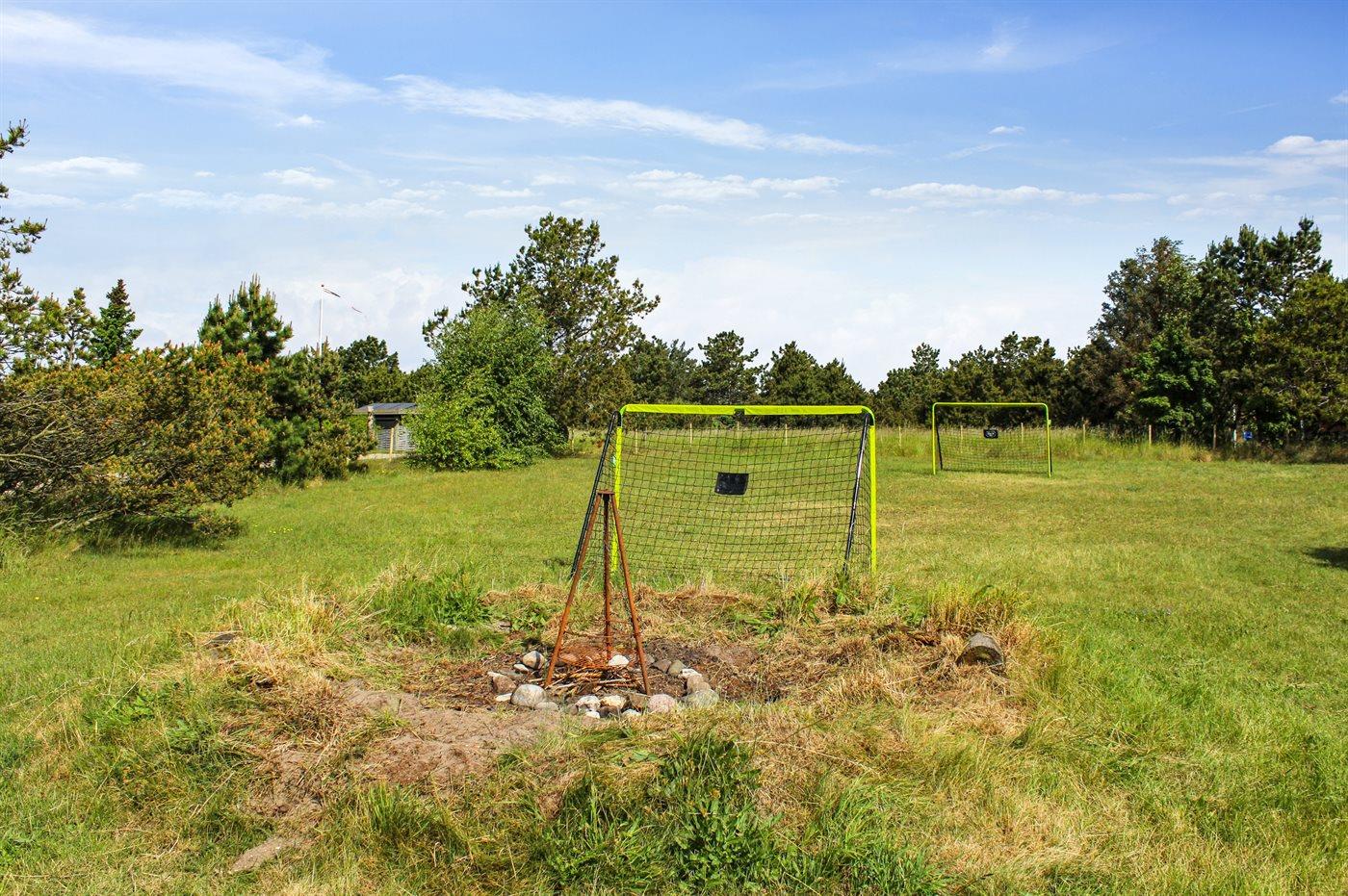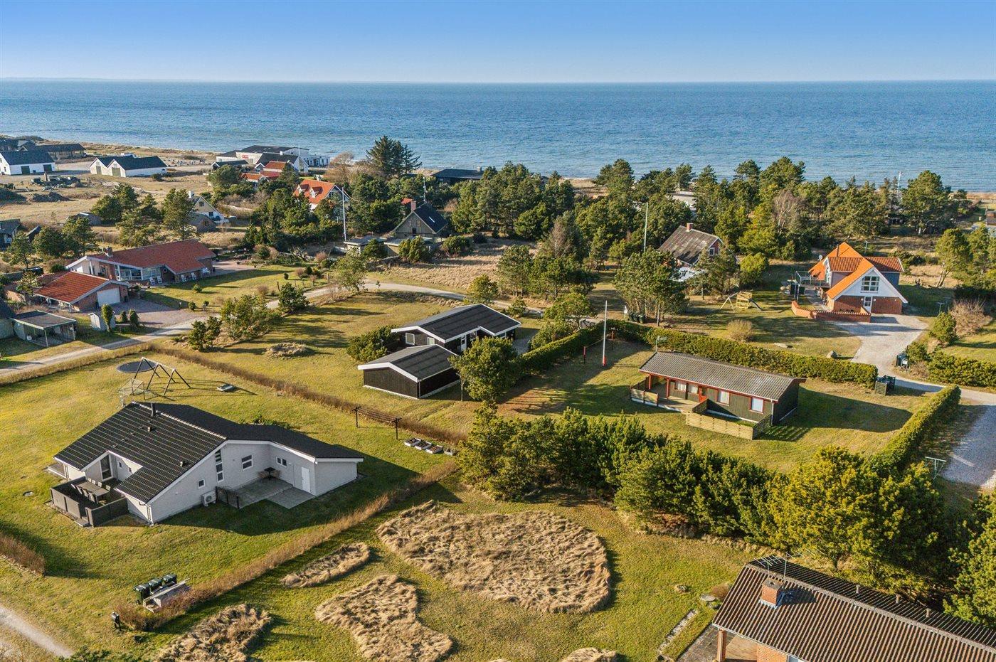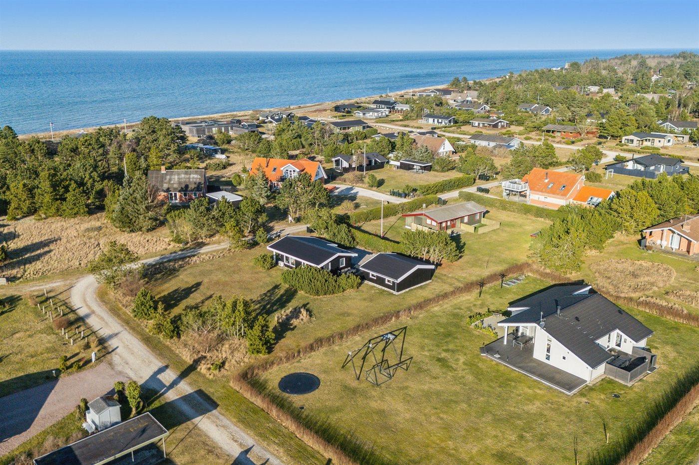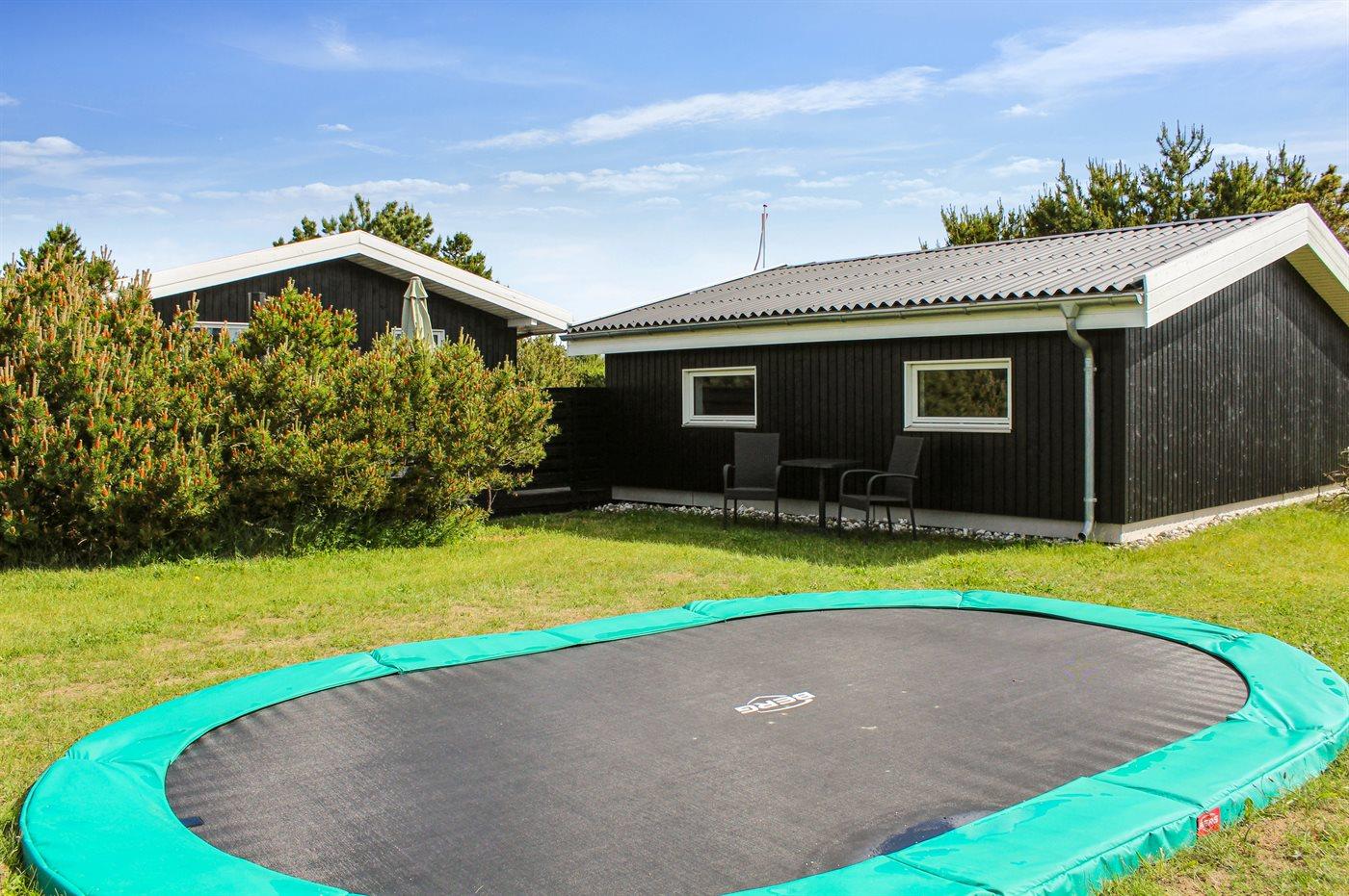 Ferieboligen er beliggende på en 1260 m² stor havegrund. Der er 200 m til havet. Nærmeste forretning er beliggende i en afstand af 1500 m. Til ferieboligen hører åbent terrasseareal. Desuden er der overdækket terrasse. Trampolin. Fodboldmål. Udendørs bruser. Grill til rådighed. Der er carport til rådighed. Parkering ved ferieboligen.