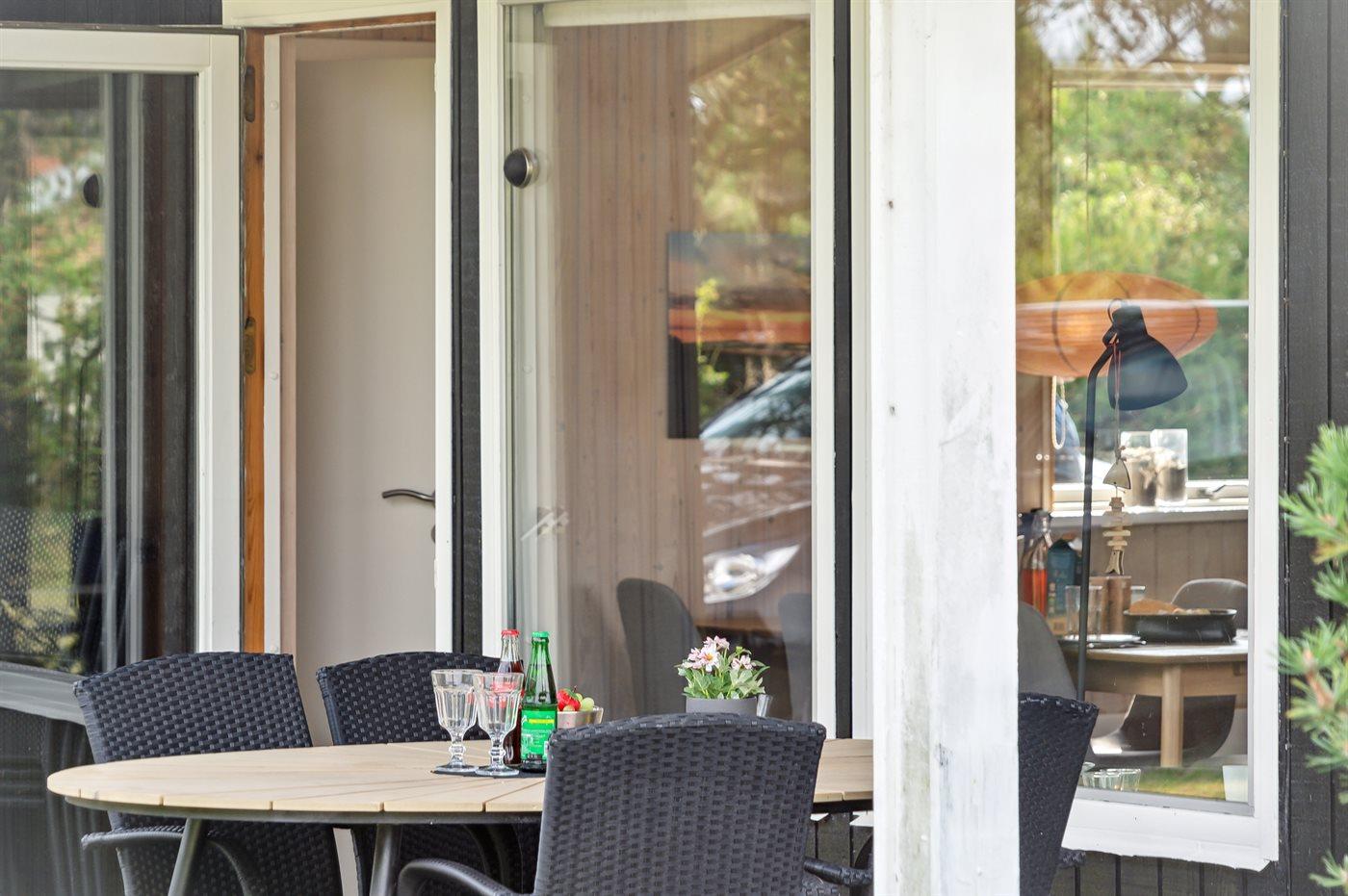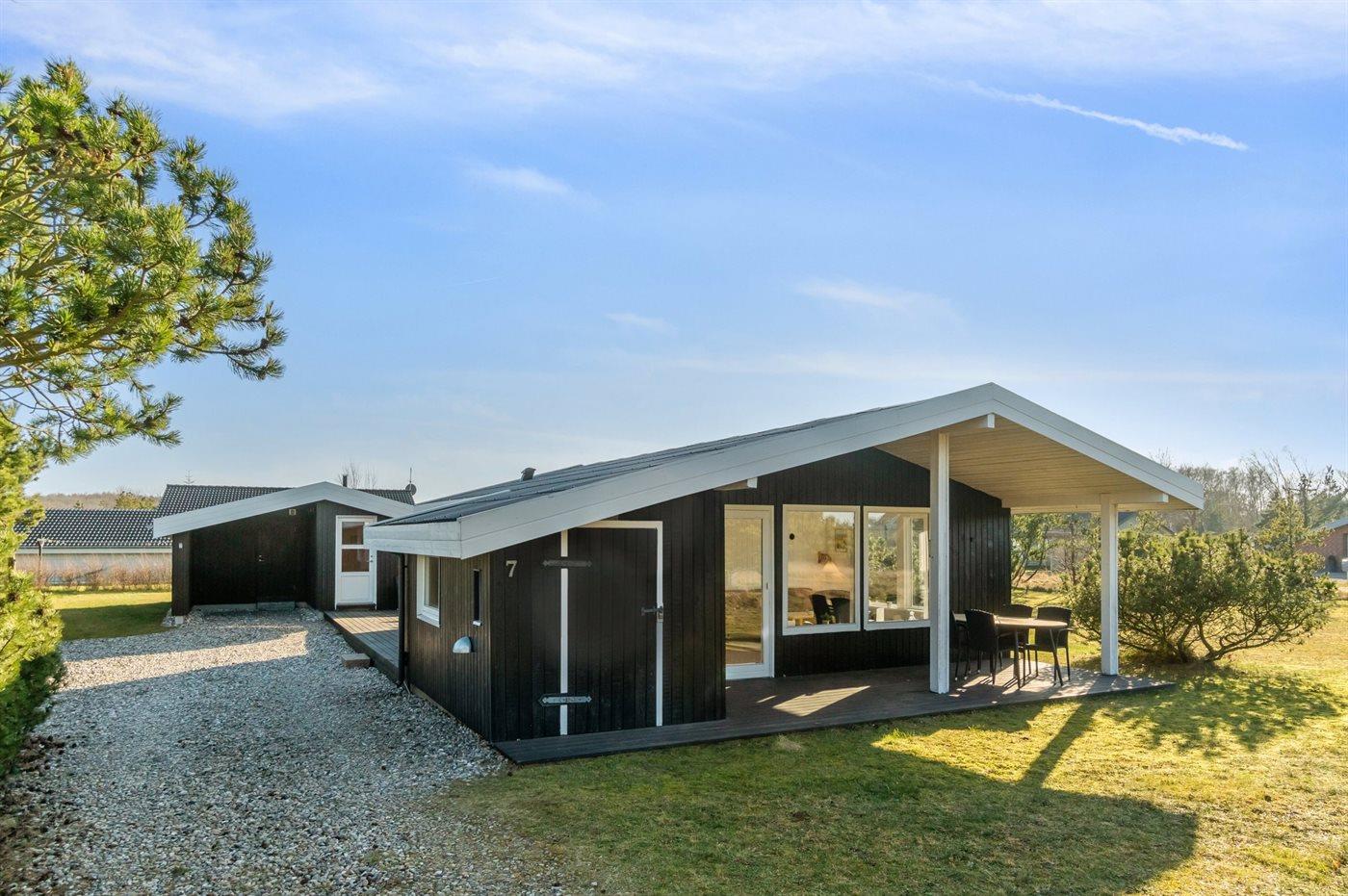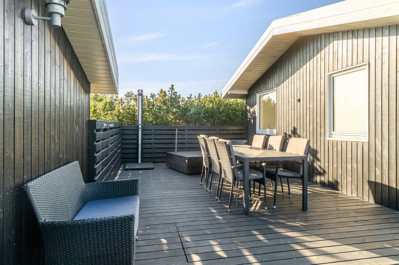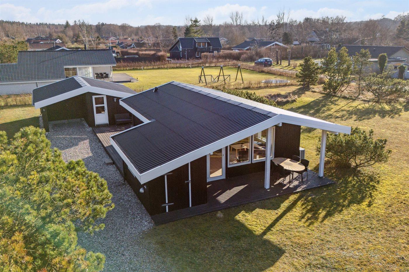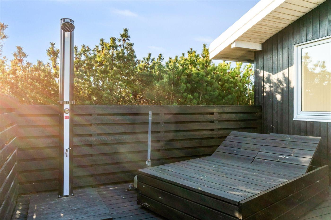 Ferieboligen er beliggende på en 1260 m² stor havegrund. Der er 200 m til havet. Nærmeste forretning er beliggende i en afstand af 1500 m. Til ferieboligen hører åbent terrasseareal. Desuden er der overdækket terrasse. Trampolin. Fodboldmål. Udendørs bruser. Grill til rådighed. Der er carport til rådighed. Parkering ved ferieboligen.