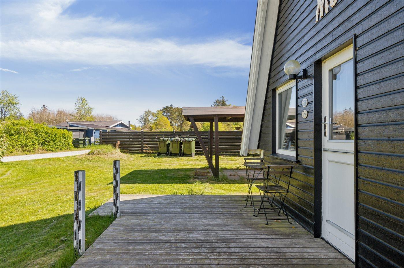 Ferieboligen er beliggende på en 1200 m² stor havegrund. Der er 300 m til havet. Nærmeste forretning er beliggende i en afstand af 2000 m. Til ferieboligen hører åbent terrasseareal. Desuden er der overdækket terrasse. Udgang til altan. Der er redskabsrum. Gynge. Grill til rådighed. Der er carport til rådighed. Parkering ved ferieboligen.