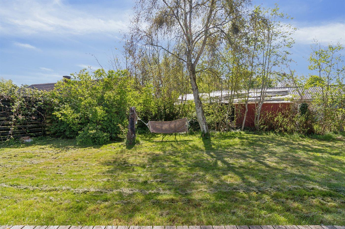 Hyggeligt sommerhus i Glesborg med have, terrasse og kun 300 meter til børnevenlig strand.