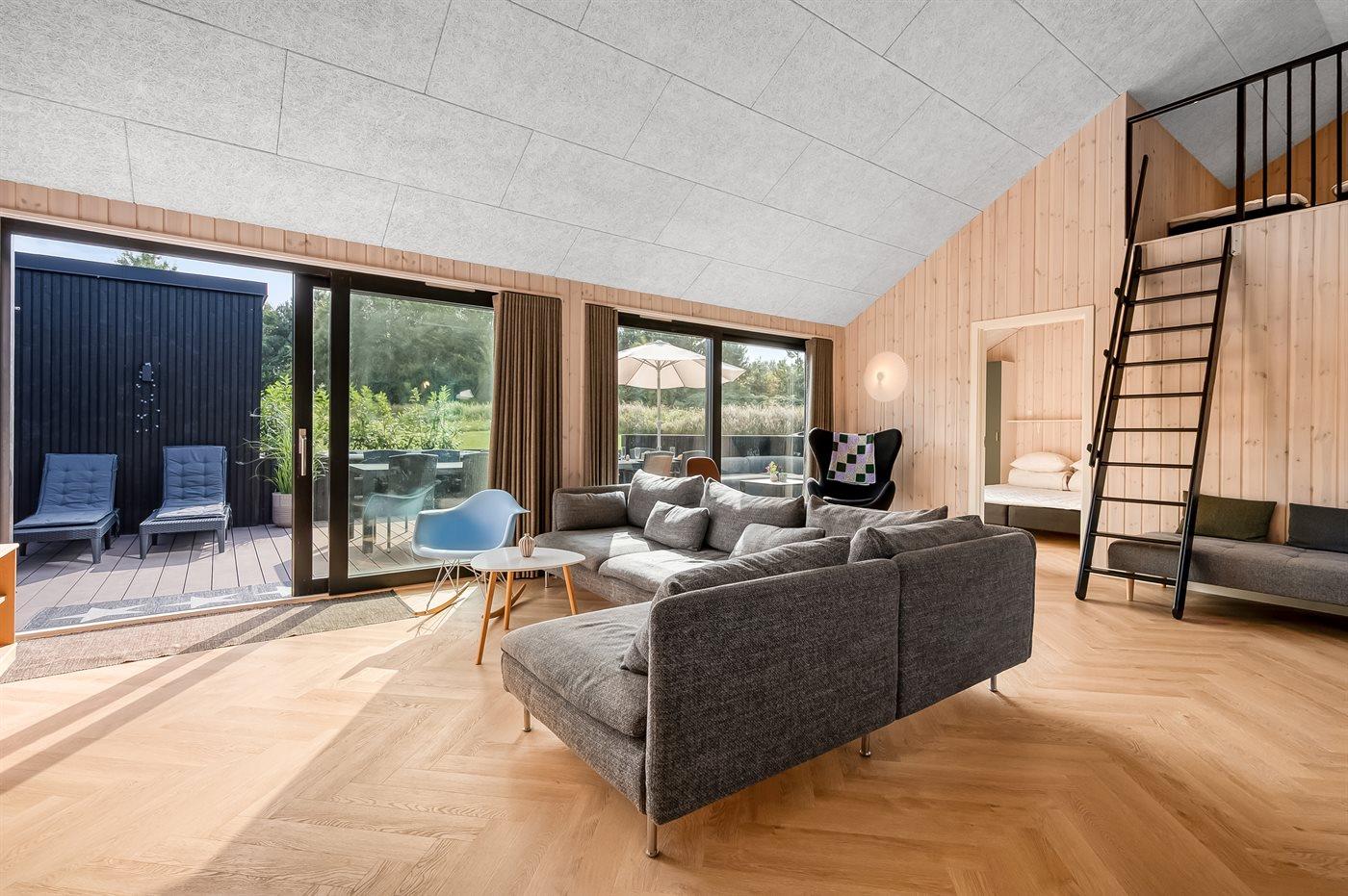 Eksklusivt sommerhus i Fjellerup med spa, sauna og nærhed til børnevenlig strand.