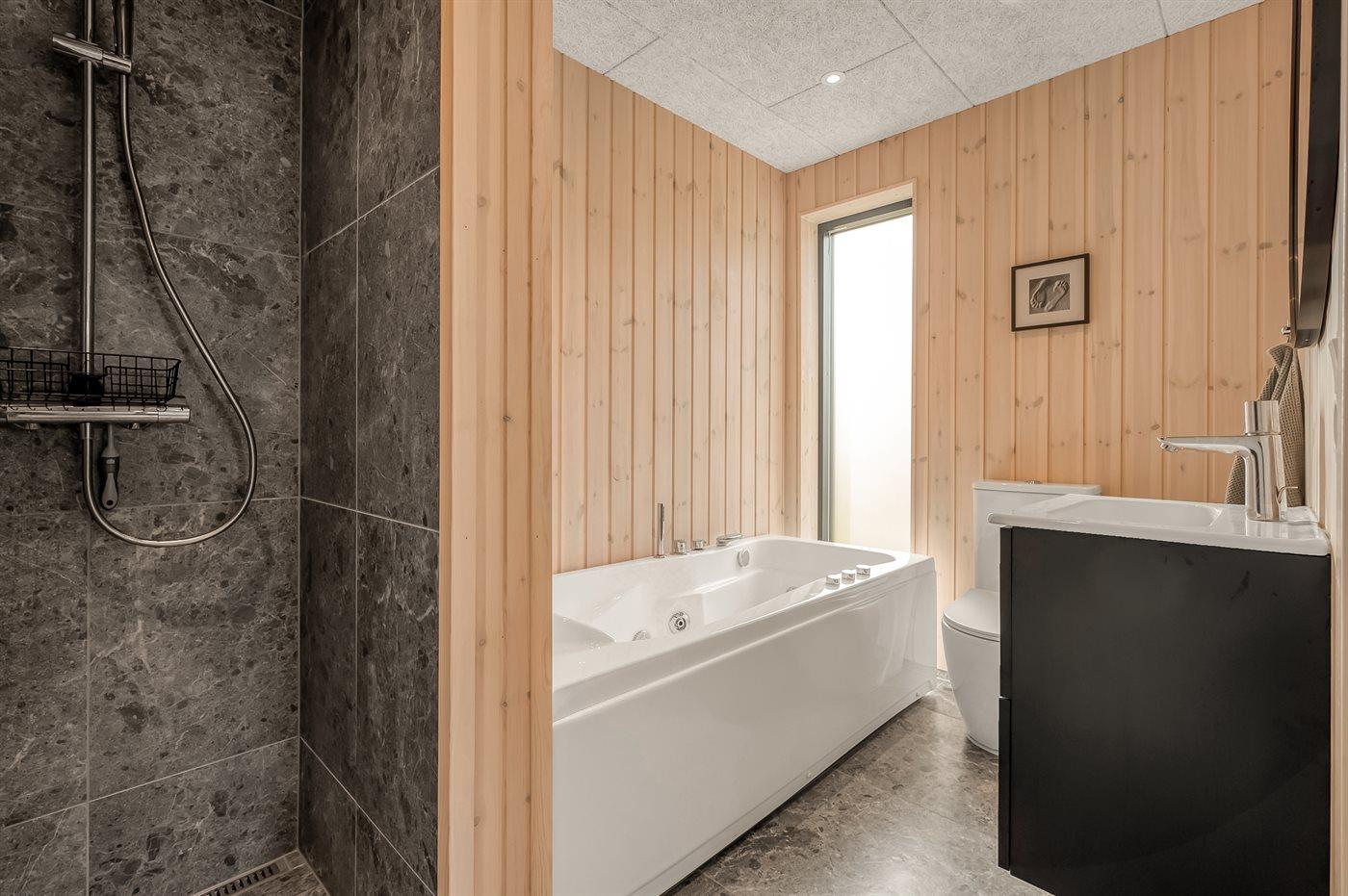 Der er 3 badeværelser med bruseniche og 3 toiletter. Der er gulvvarme på 3 badeværelser.
