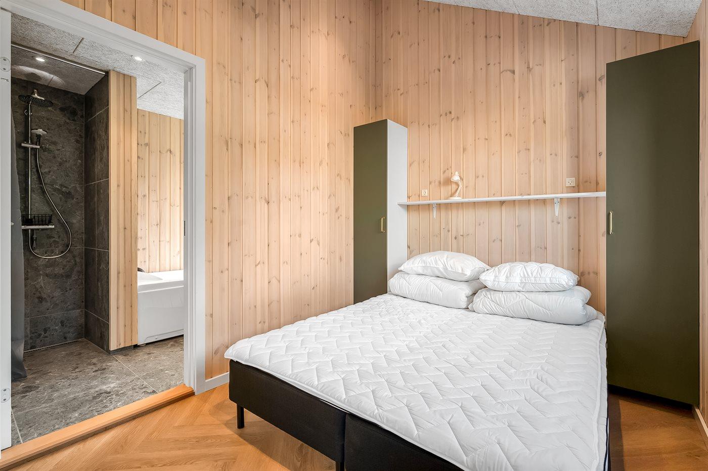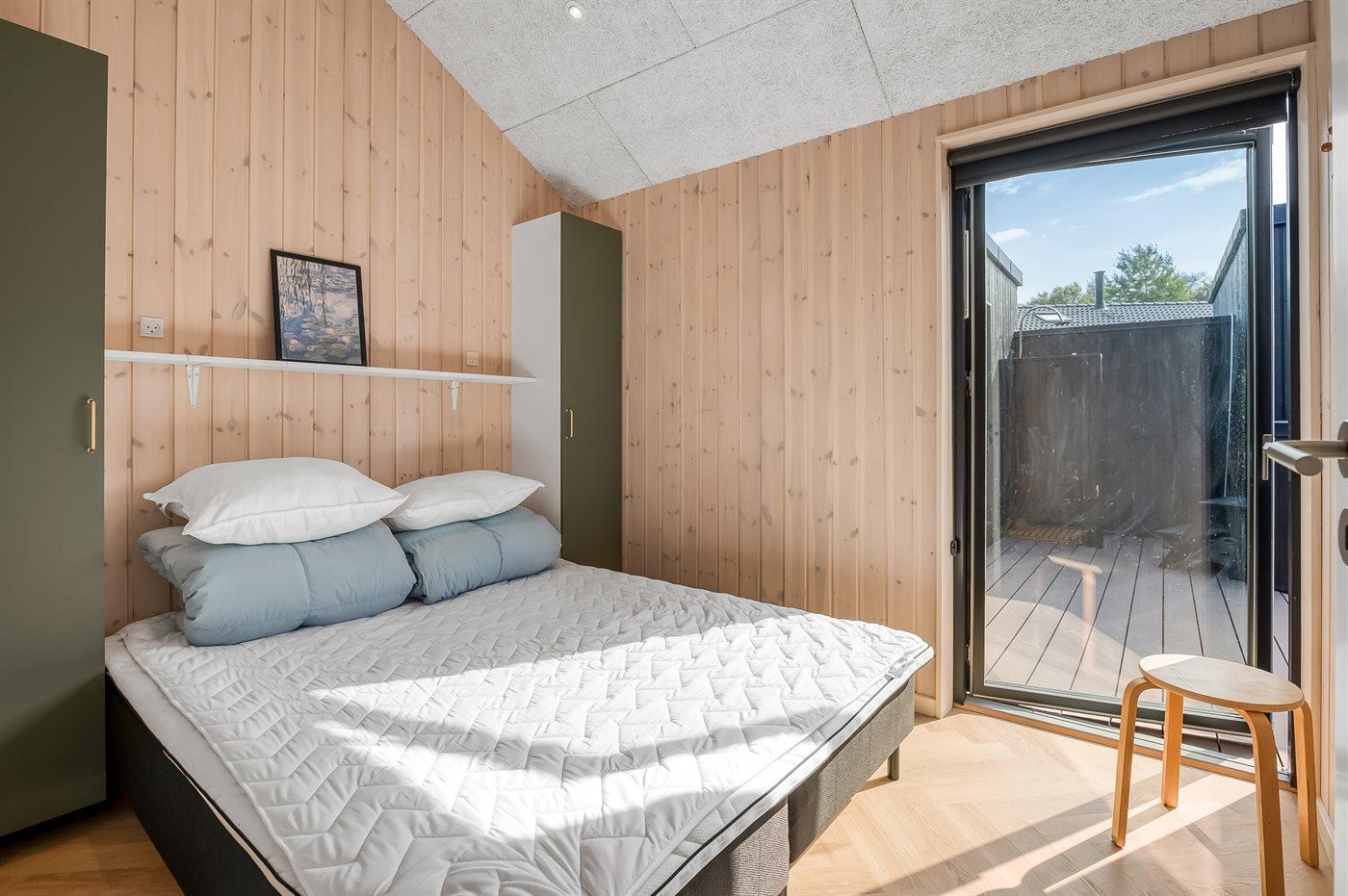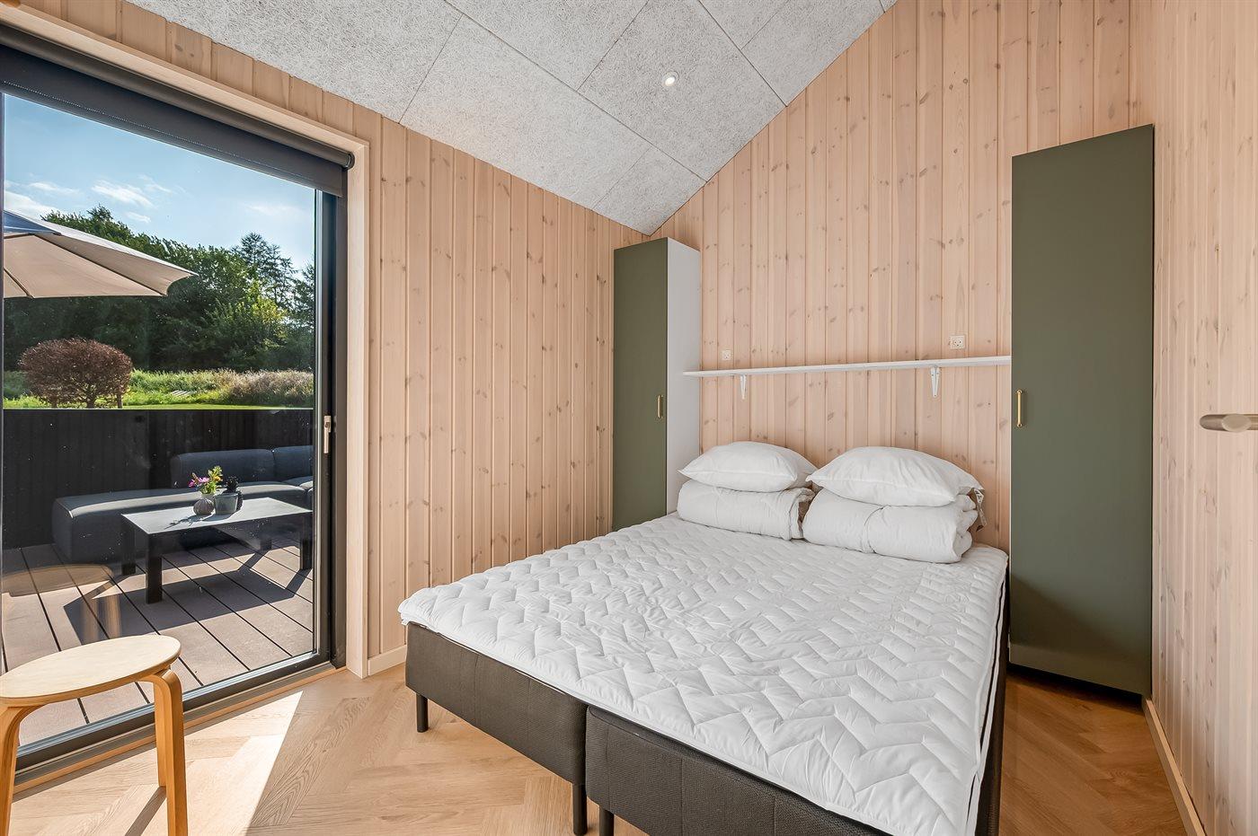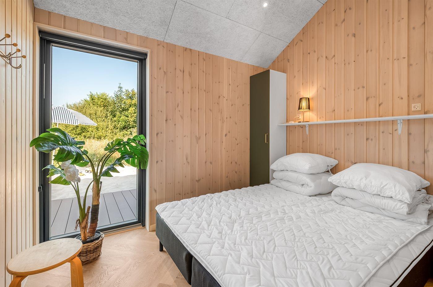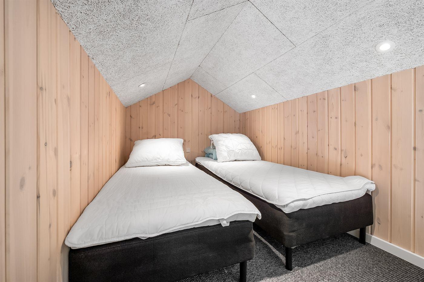 Der er i alt 5 soveværelser. Sovepladserne fordeler sig på: 10 sovepladser i dobbeltsenge. 2 sovepladser i enkeltsenge.- 2 af disse sovepladser befinder sig på husets hems, og 2 sovepladser findes i anneks.