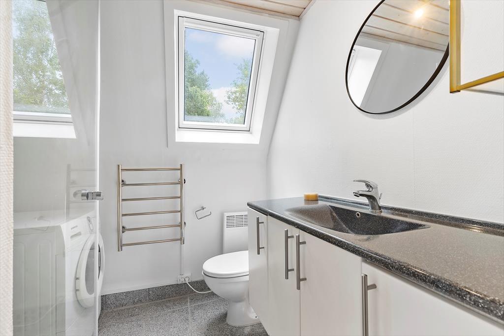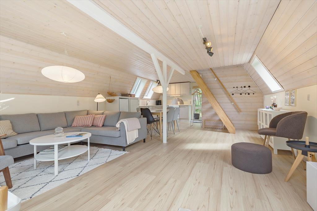Velkommen indenfor Et meget hyggeligt sommerhus. De 2 etager er lyse og venlige og de synlige bjælker "sætter prikken over i ét. Dejligt køkken med godt lys og fine forudsætninger for feriemadlavningen, spisebord og dejlig stue med gode møbler i ét rum samt godt badeværelse med brusekabine og vaskemaskine i stueplan. Ovenpå er der 3 soveværelser - ét med 1 dobbeltseng samt 2 med 2 enkeltsenge i hvert.