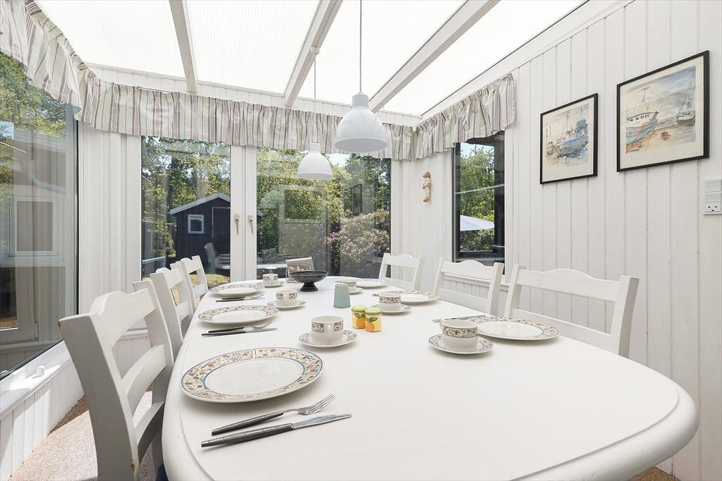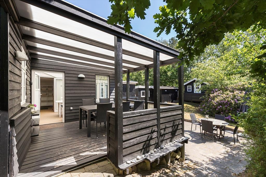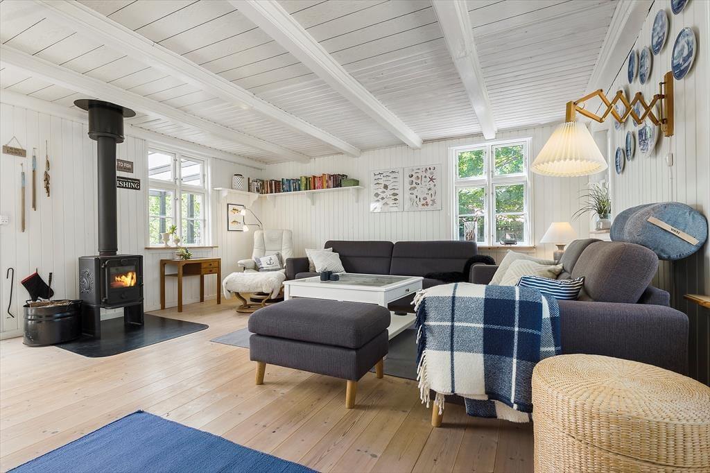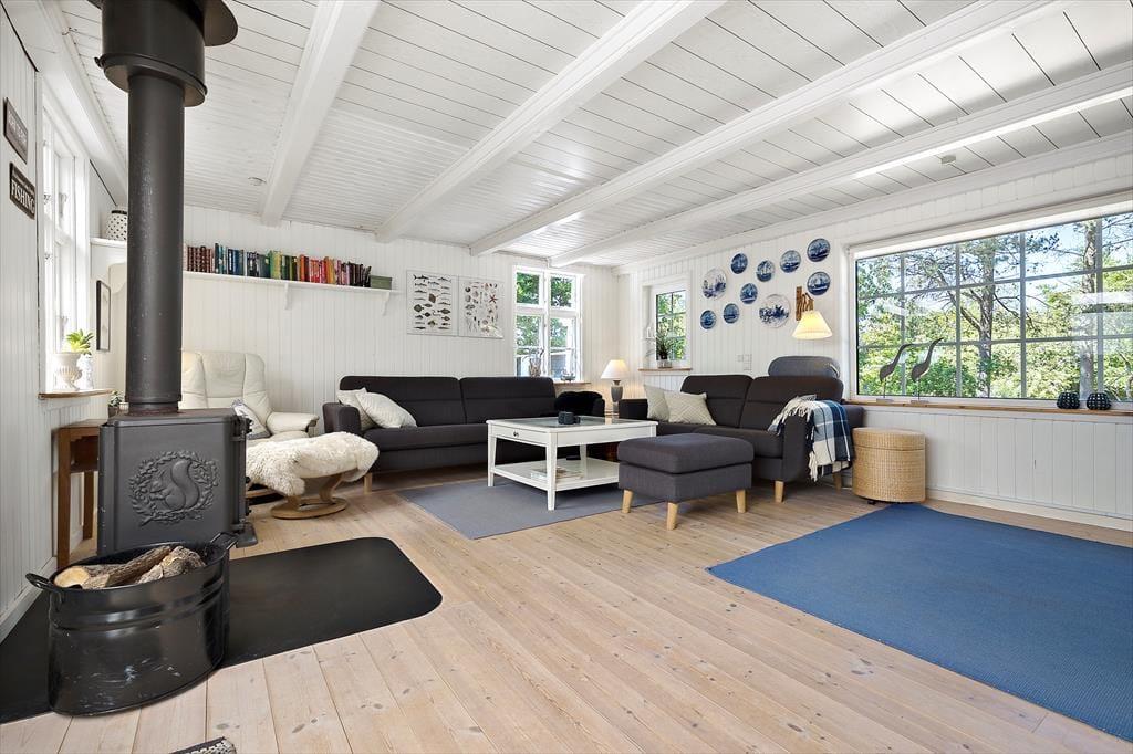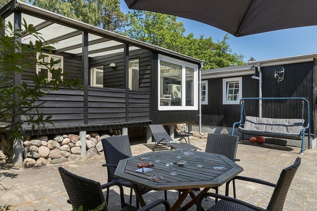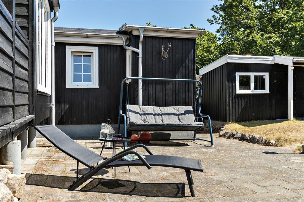 Sommerhuset ligger på en skøn indhegnet naturgrund med store terrassearealer. Her er masser af lads til leg, boldspil og afslapning i solen. Her kan du nyde både solopgangen med en kop kaffe og solnedgangen med et glas vin – alt imens du er omgivet af den smukke natur.