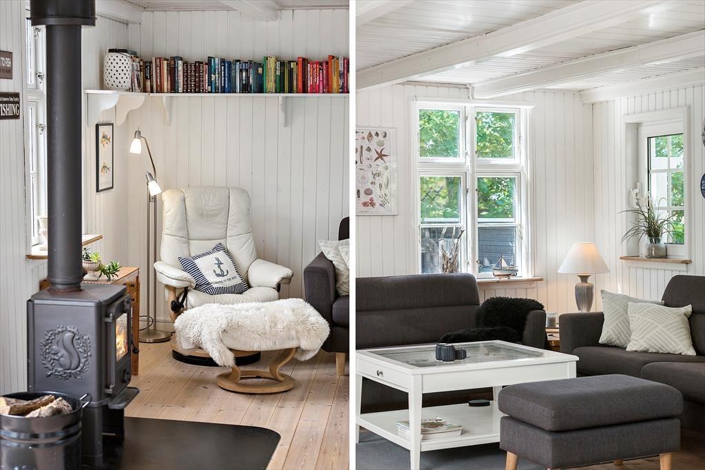 Forestil dig at køre gennem det charmerende sommerhusområde ved Fjellerup Strand, hvor naturen omfavner dig med sin ro og skønhed. Her, på en skøn indhegnet naturgrund, finder du et hyggeligt og velholdt sommerhus – et sted, hvor ferieminder skabes. Træd indenfor i den dejlige stue, hvor varme og hygge møder dig. De komfortable møbler indbyder til afslapning, og på kølige aftener kan du tænde op i brændeovnen og lade flammernes knitren skabe en hyggelig stemning. I den integrerede udestue finder du en separat spiseafdeling – det perfekte sted at samle familien til gode måltider og lange snakke. Det veludstyrede køkken gør madlavningen til en leg og er praktisk med opvaskemaskine og sågar vaskemaskine, så du kan bruge mere tid på at nyde ferien.