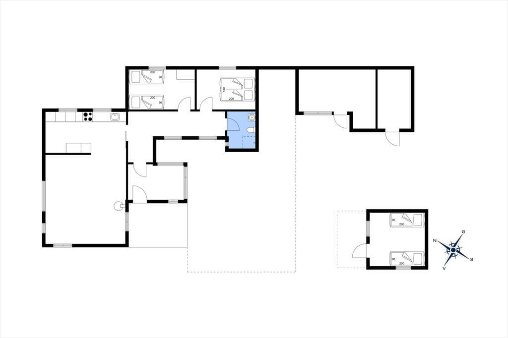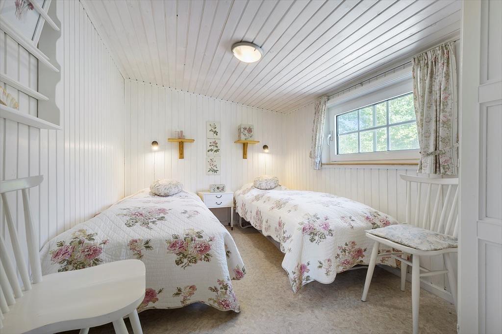 Når dagen går på hæld, kan du trække dig tilbage til et af de to hyggelige soveværelser – det ene med en dejlig dobbeltseng, det andet med to enkeltsenge. Derudover byder det velholdte og charmerende anneks på endnu to enkeltsenge – ideelt til gæster eller familiens teenagere, der ønsker lidt ekstra privatliv. Badeværelset er lyst og funktionelt og med bruseniche, så du kan starte dagen frisk og veludhvilet.