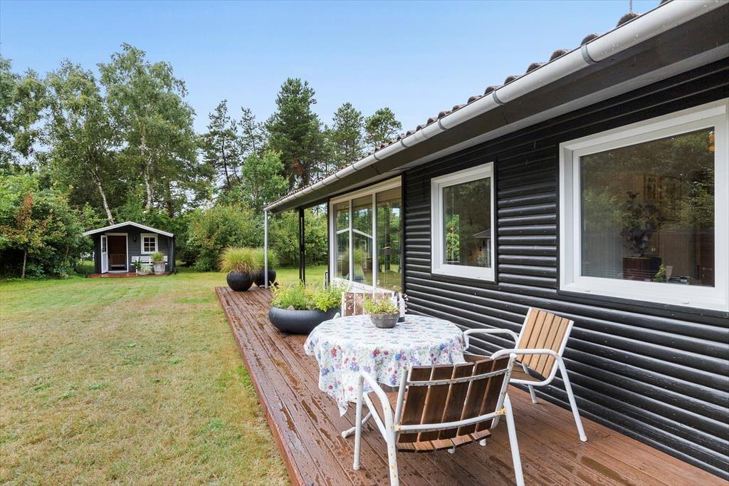 Nyd livet udenfor, hvor der venter vidunderlig have, som er skabt med omhu og kærlighed af en ejer med grønne fingre. Den frodige græsplæne strækker sig ud som et grønt tæppe, blødt under dine fødder og perfekt til barfodede børn, der løber rundt og leger i solen. Hele grunden er omkranset af grønt, hegn eller udhuse i perfekt harmoni med havens æstetik, så du kan nyde dit helt eget, ugenerte paradis. Du er skjult fra omverdenen, omgivet af naturens ro og skønhed. Haven rummer fine, små kroge og hjørner, hvor du kan trække dig tilbage med en bog eller blot nyde synet af naturen. I midten af haven ligger et hyggeligt bålsted, perfekt til sene aftener med snobrød, skumfiduser og historier fortalt under en stjerneklar himmel til flammernes magiske stemning. Og når solen står højt på himlen, finder du din plads på den store, herlige terrasse. Størstedelen af terrassen er overdækket, hvilket betyder, at du kan nyde udendørslivet næsten uanset vejret. Denne grund er meget mere end bare en have – det er en levende oase, hvor du kan trække vejret dybt og finde fornyet energi i hver eneste krog. 250 meter til skøn badestrand, så morgen- og aftendukkert er dejligt og nemt.