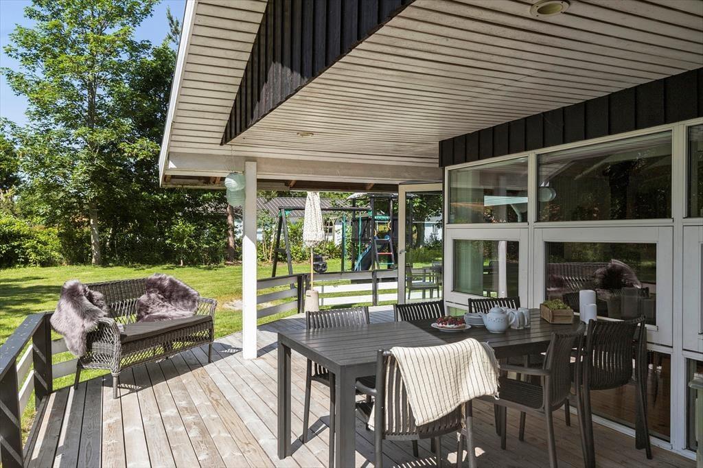 Velkommen indenfor Forestil dig en sommermorgen, hvor solens stråler blidt strømmer ind gennem de store vinduespartier i et gedigent sommerhus. Lys og luft fylder rummet, og du kan næsten mærke den friske duft af græs, der blander sig med den klare luft fra terrassen udenfor. Dette er et sted, hvor komfort og æstetik mødes.