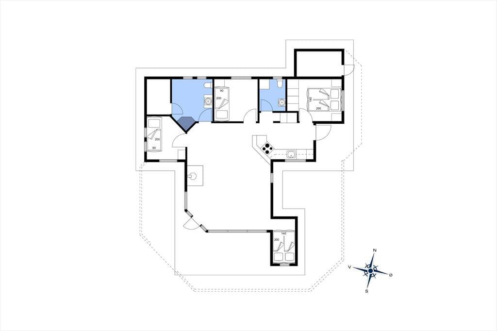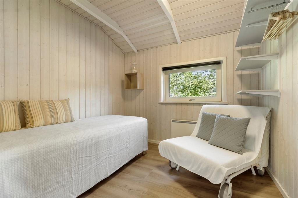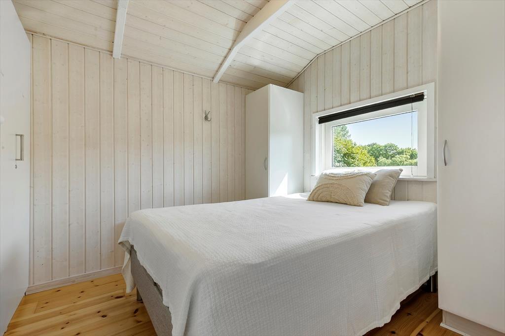 Stuen er hjertet i sommerhuset, en rummelig oase med en stor brændeovn, der sender en varm glød ud i rummet på kølige aftener. Her kan du synke ned i den bløde lænestol med en god bog eller samle familien om spisebordet til en aften med brætspil og latter. Den generøse gulvplads indbyder til leg og bevægelse, uanset om det er børn, der tumler rundt, eller om du bare vil nyde at kunne strække benene.