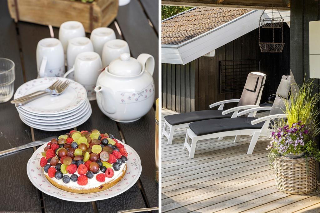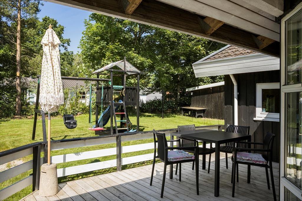 Rundt om huset er der terrasser til næsten alle verdenshjørner, og hver af dem er indbydende – fra morgenkaffen i den blide sol til en hyggelig middag i skumringens lys. Nyd ungernes hvin, når de lystigt gynger og brænder dagens sidste krudt af. Du er omgivet af åbne vidder, når du er på terrassen og på græsplænen.