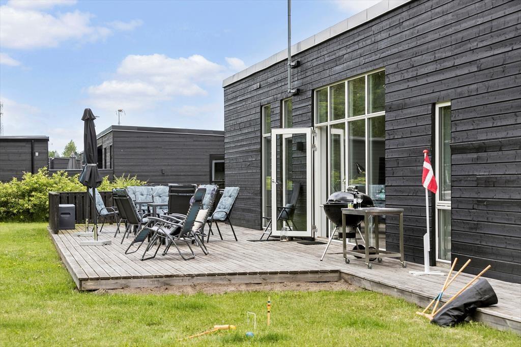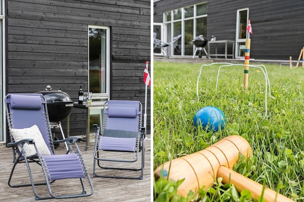 For enden af en rolig grusvej i nyere sommerhusområde ligger sommerhuset ugenert – Her er gode parkeringsmuligheder og nem adgang til oplader til jeres elbiler. Bag huset breder en stor, plan græsplæne sig ud. Her er masser af plads til leg og spil – prøv husets kongespil og kroket. Børnene kan udforske sine evner i legetårnet, hvor der også er gynge og ruschebane, mens I voksne snakker på terrassen. Når grillmiddagen er spist, kan I tage resten af vinen med til bålet og samles til røverhistorier og ristede skumfiduser i mariekiks. Terrassen er en herlig oase med plads til jer alle. Uanset om I søger afslapning eller aktivitet, har dette sommerhus, hvad der skal til for at skabe uforglemmelige minder sammen med andre.