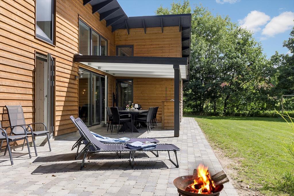 Nyd livet udenfor: Udendørs venter et sandt paradis for både børn og voksne. Terrassen er en indbydende oase, hvor en del er overdækket og perfekt til hyggelige grill aftener under halvtaget, selv når duggen falder. På den store græsplæne er der plads til eventyr og leg. Børnene kan svinge sig højt op i gyngerne, suse ned ad rutschebanen med vind i håret, eller hoppe uendeligt på trampolinen og føle sig vægtløse. Ved bålpladsen kan familien samles om aftenens sidste, riste skumfiduser og fortælle historier under stjernehimlen. Shelteren byder på et ekstra eventyr, hvor I kan overnatte og lytte til nattens lyde, mens I drømmer om morgendagens oplevelser.
