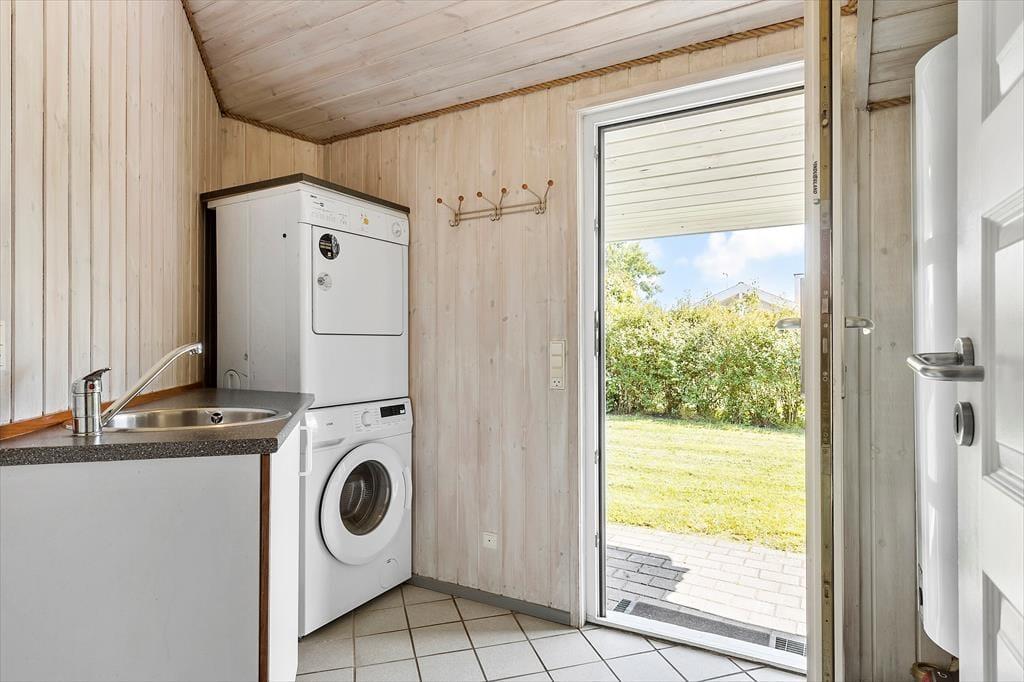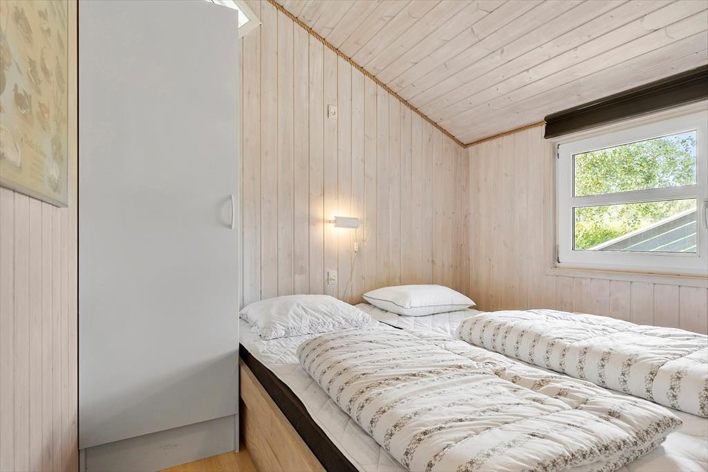 Velkommen indenfor: Tænk at vågne op i dette dejlige sommerhus fra 2003, hvor der er højt til loftet og hvor store vinduespartier lader morgenlyset komme ind. Mange fine vinkler og hygge skaber rammerne for mindeværdige ferieøjeblikke. Træd ud gennem terrassedøren til en fantastisk sydvestvendt terrasse, hvor du kan nyde morgenkaffen, mens børnene lystigt leger på græsplænen. Indenfor inviterer opholdsrummet til samvær. Et åbent køkken flyder sammen med alrummet og stuen – et naturligt samlingspunkt for familien. Her kan I lave mad sammen, spille brætspil eller bare slappe med andre sysler eller TV. Når dagen er omme og terrassedøren lukkes, er det tid til at nyde natten i et af de 5 soveværelser - alle med dobbeltsenge og et af dem med en køje over dobbeltsengen. To badeværelser tilbyder både en boblende spa og en varm sauna til afslapning. Bryggerset er praktisk indrettet med plads til overtøj og barnevogn, og både vaskemaskine og tørretumbler står klar til brug.