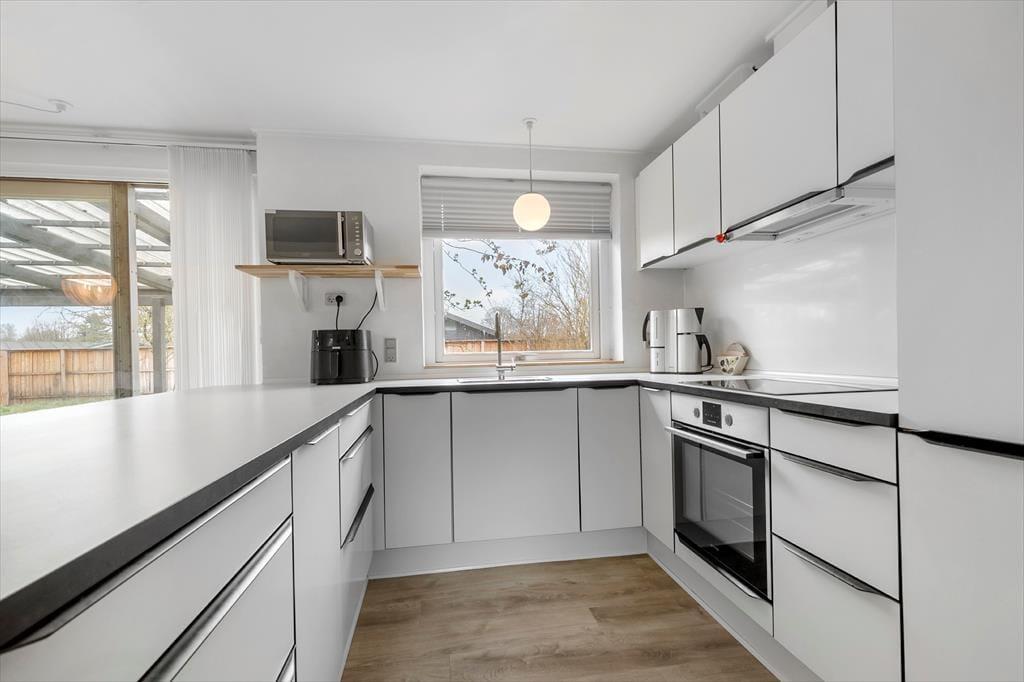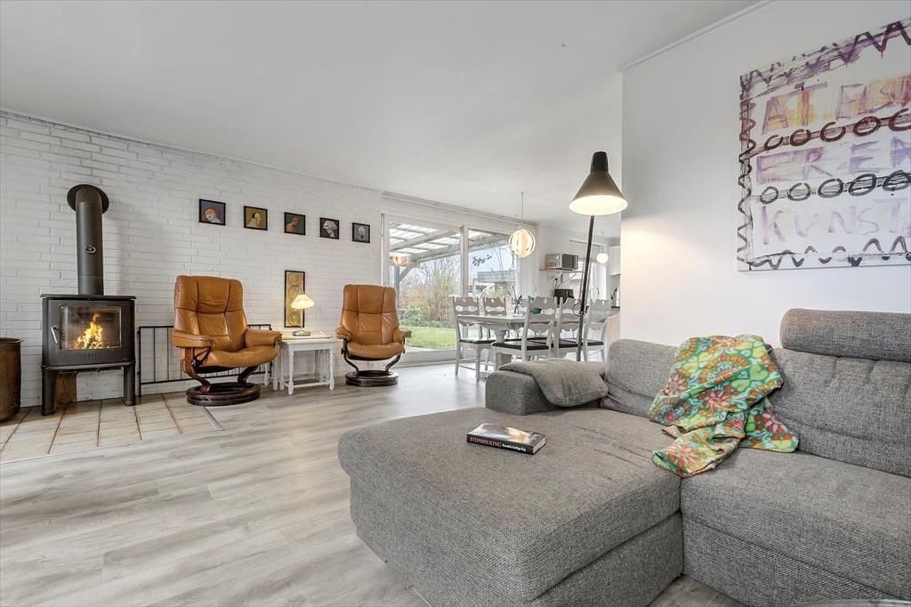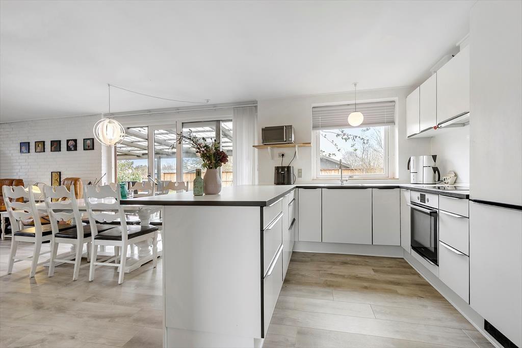 Velkommen til et charmerende murstenshus fra 80’erne, hvor fortidens varme hygge møder nutidens afslappede feriestemning. Her træder du ind i et lyst og åbent køkken, der flyder naturligt sammen med alrummet og den hyggelige stue – et perfekt samlingspunkt for gode samtaler og tid sammen. Brændeovnen knitrer blidt og fylder rummet med varme og den velkendte, hjemlige duft af brændt træ. Når du åbner døren ud til den overdækkede terrasse, mærker du den friske luft og ser på den hyggelige udepejs – et dejligt sted til lange og dugfrie aftener.