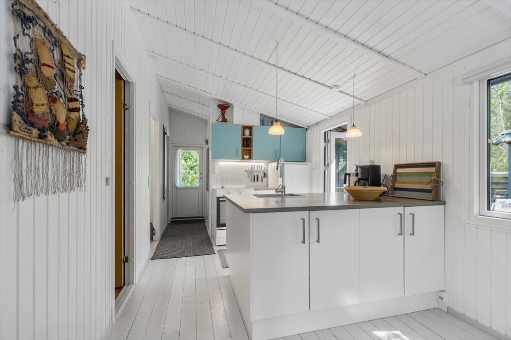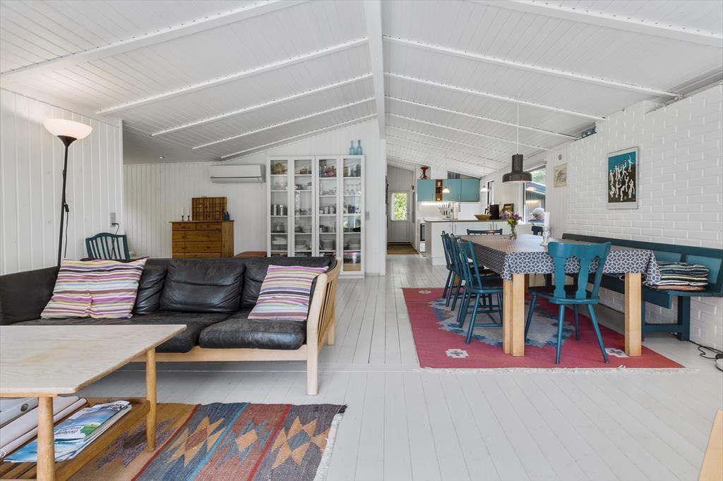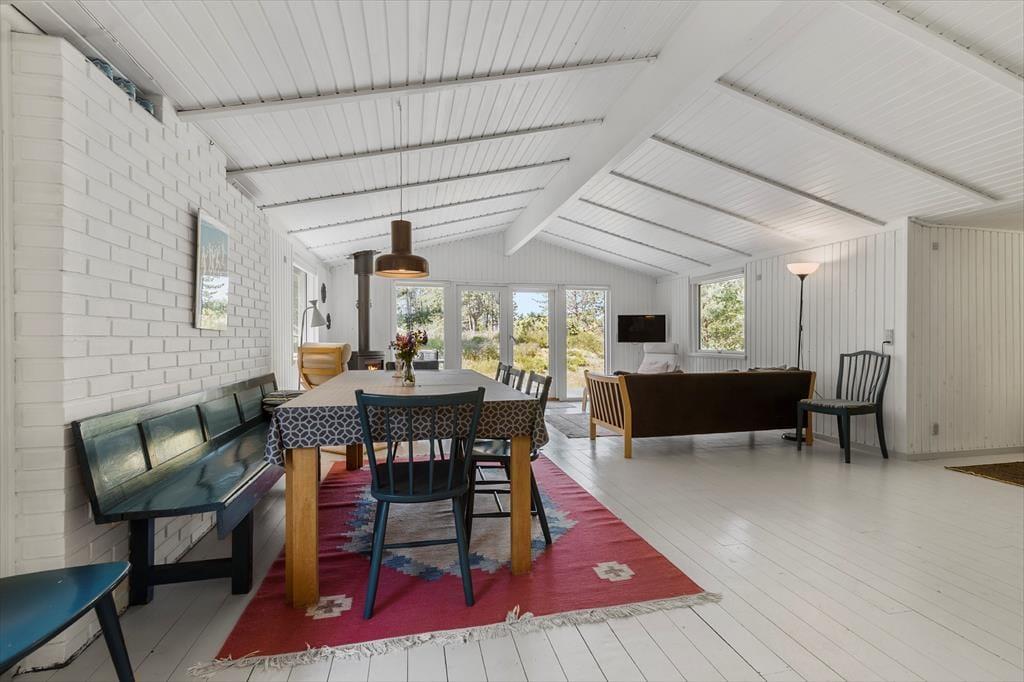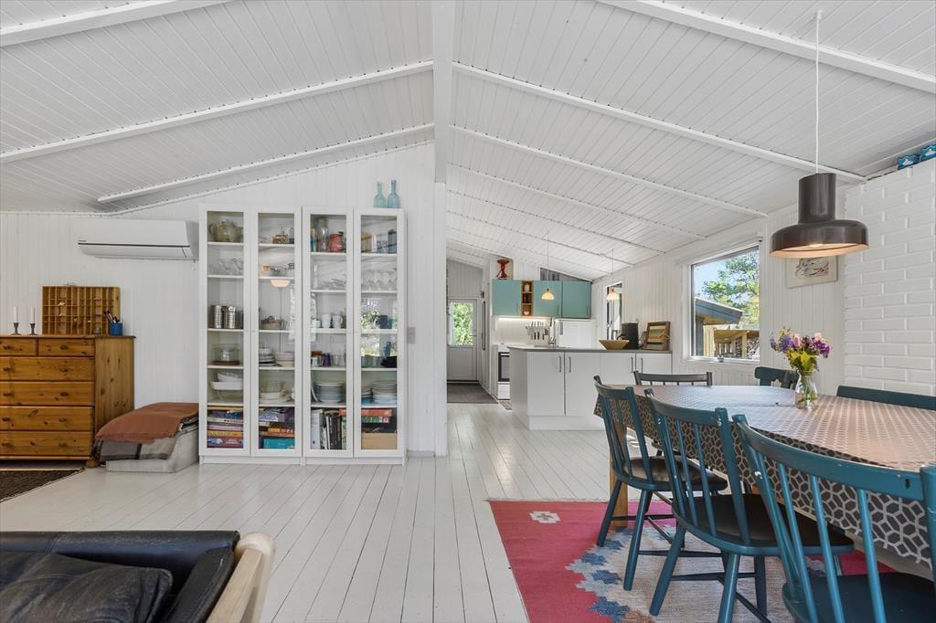 Velkommen til et sommerhus, hvor hyggen bor, og hvor det nostalgiske træhus inviterer dig til at sænke skuldrene og være til stede. Her er der skabt god plads i fællesrummene, så du og dine nærmeste kan være sammen – uden at gå i vejen for hinanden.