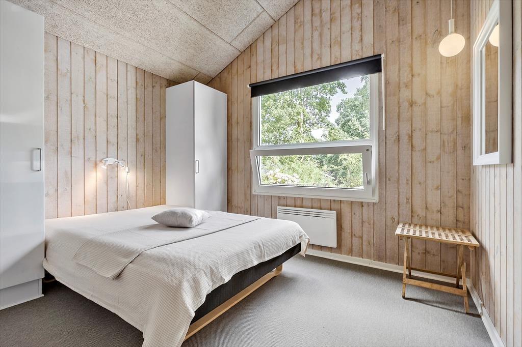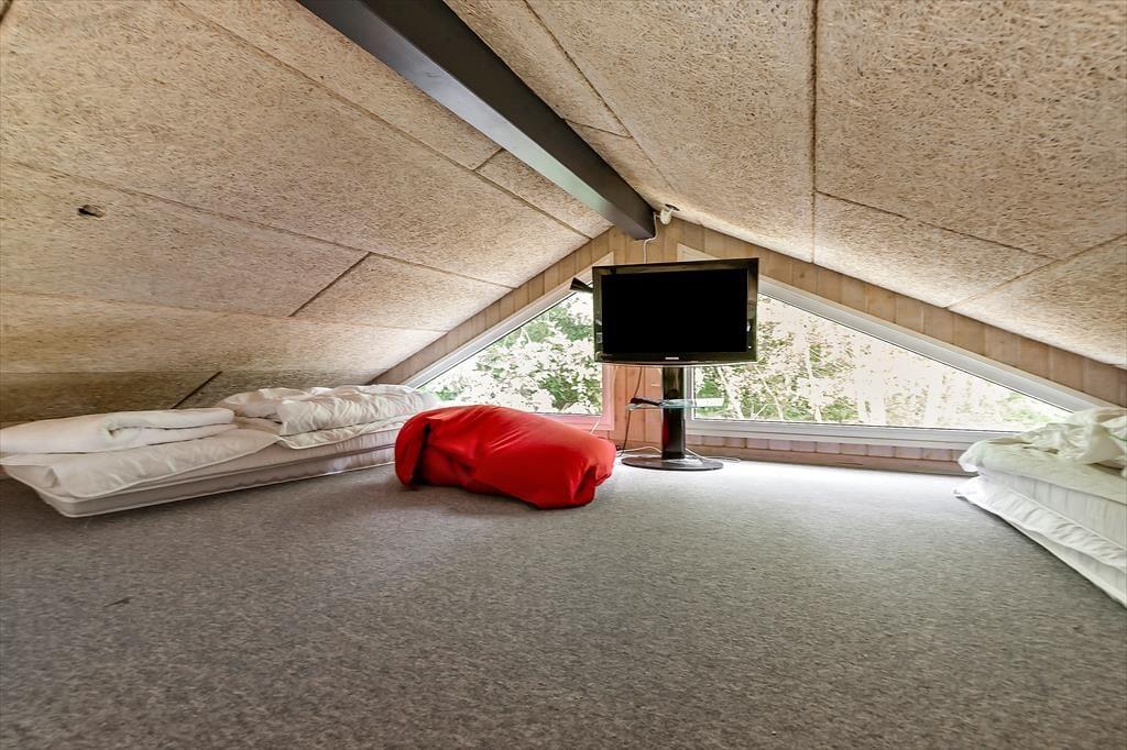 Huset rummer fire gode soveværelser med dobbeltsenge samt en hems, som fungerer godt som ekstra sovepladser, hvis I får gæster i løbet af ferien. Derudover findes endnu et dejligt badeværelse med vaskesøjle samt en rummelig indgang, der giver plads til hele familien og feriens udstyr.