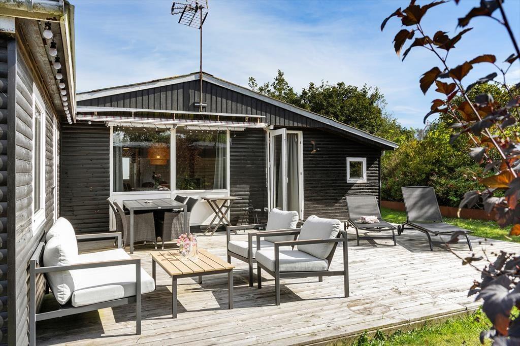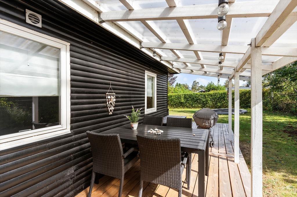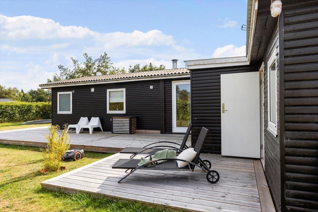 Der er en fin græsplæne til boldspil eller leg, et bålsted til aftener med hygge og snobrød, samt et drivhus med møbler, hvor I kan nyde en stille stund uanset vejret. Blot 500 meter fra huset venter den skønne badestrand, hvor ferien kan fortsætte i vand og sand.