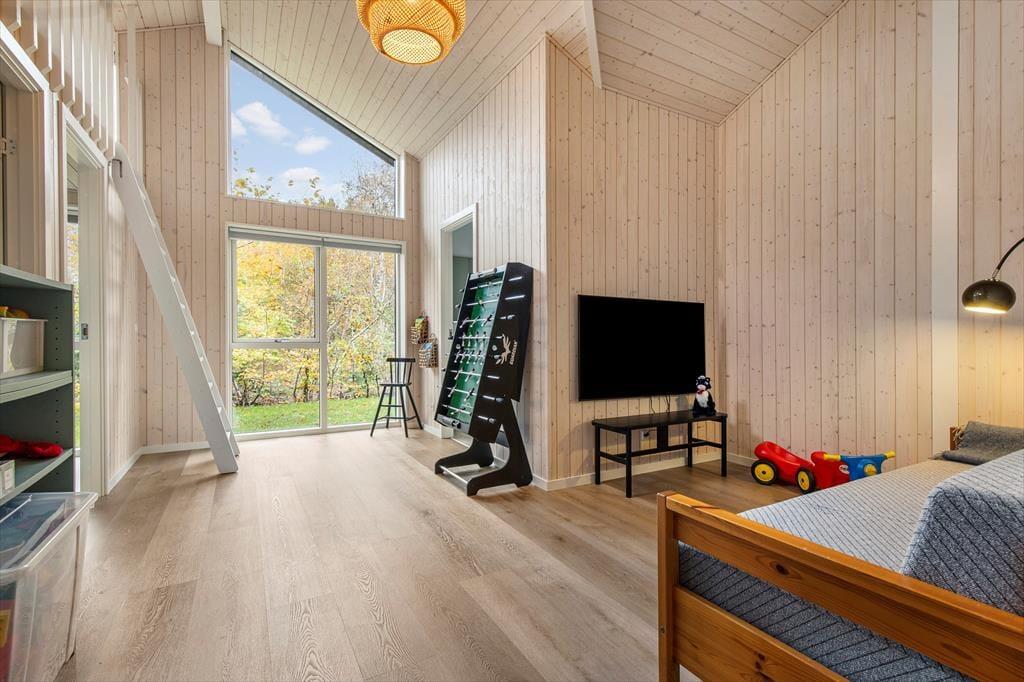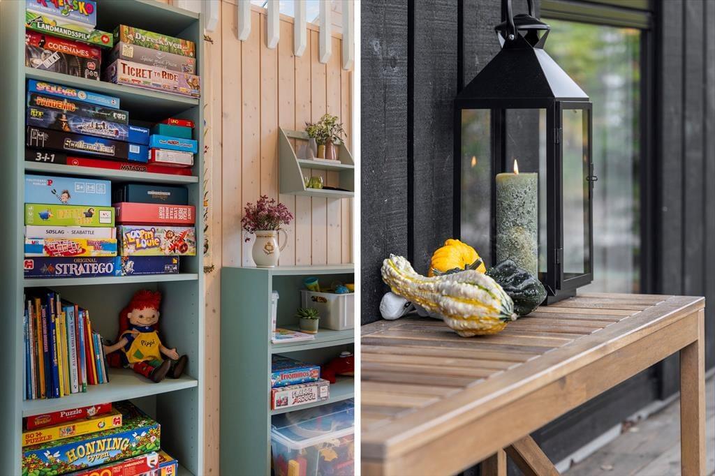 Aktivitetsrummet bliver favoritstedet i huset, når vejret kalder på indendørstid eller energien stadig bobler efter dagens oplevelser. Her finder I børnebøger, klodser, spil, dart, bordfodbold og tv. Sovesofaen giver mulighed for ekstra hygge, og døren til rummet betyder, at glædeslarm kan leves fuldt ud, mens andre nyder at kunne tale sammen i resten af huset.