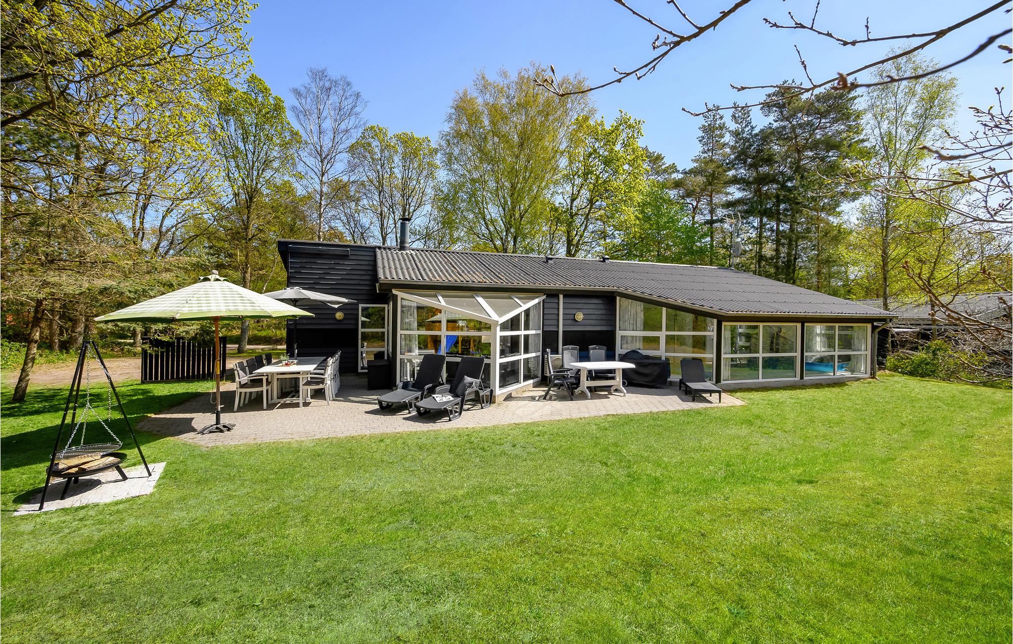 Moderne feriehus i Fjellerup med pool, sauna og stor have tæt på strand og natur.