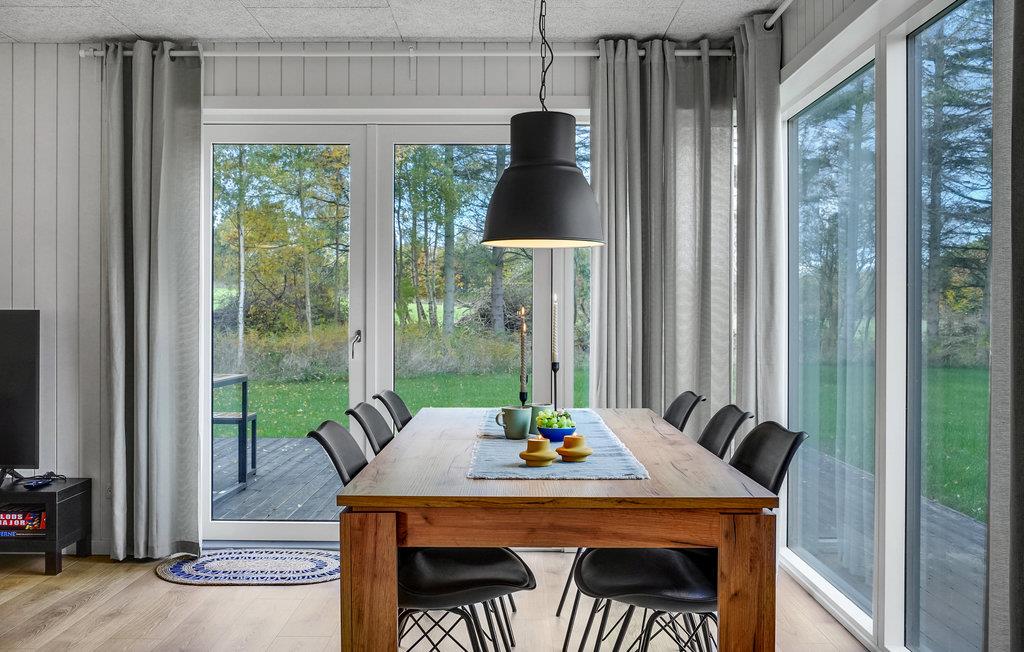 Dette skønne feriehus på halvøen Djursland er ideelt for en familie. Et smagfuldt, komfortabelt møbleret interiør venter jer indenfor. Den afslappede atmosfære i den lyse stue inviterer til afslappende dage og hyggelige måltider med udsigt til det grønne. På solrige dage kan I sætte jer ned på terrassen med en kop friskbrygget kaffe, mens jeres firbenede venner snuser rundt, og børnene spiller bold.