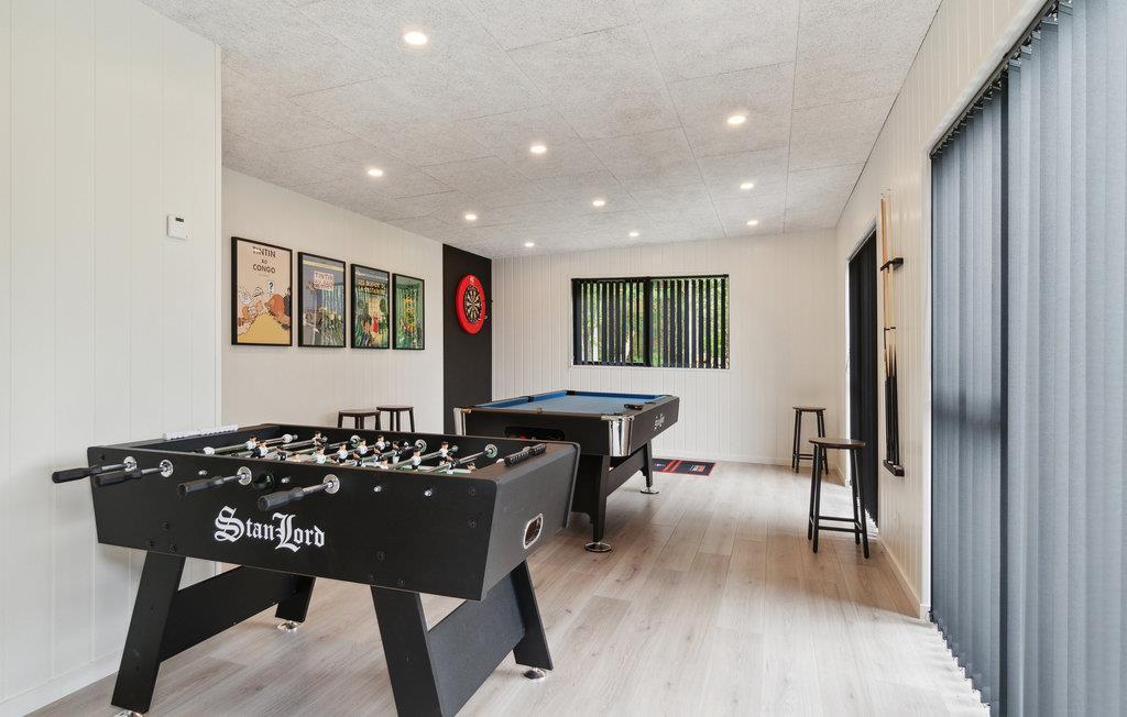 Velkommen til dette store, lækre sommerhus ved Fjellerup på Djursland, hvor der er god plads til den store familieferie eller flere familier, der er på tur sammen. Boligen emmer af kvalitet og enkle indretningsløsninger, der gør det ekstra nemt at slappe af og nyde feriedagene. Nyd de stille stunder i opholdsstuen og snup et spil billard eller bordtennis, hvis I trænger til at være aktive. Der er også en spillekonsol i aktivitetsrummet, så der er masser af underholdning til alle aldersgrupper. Om aftenen kan I benytte jer af det veludstyrede køkken og dække op til en dejlig middag rundt om spisebordet.