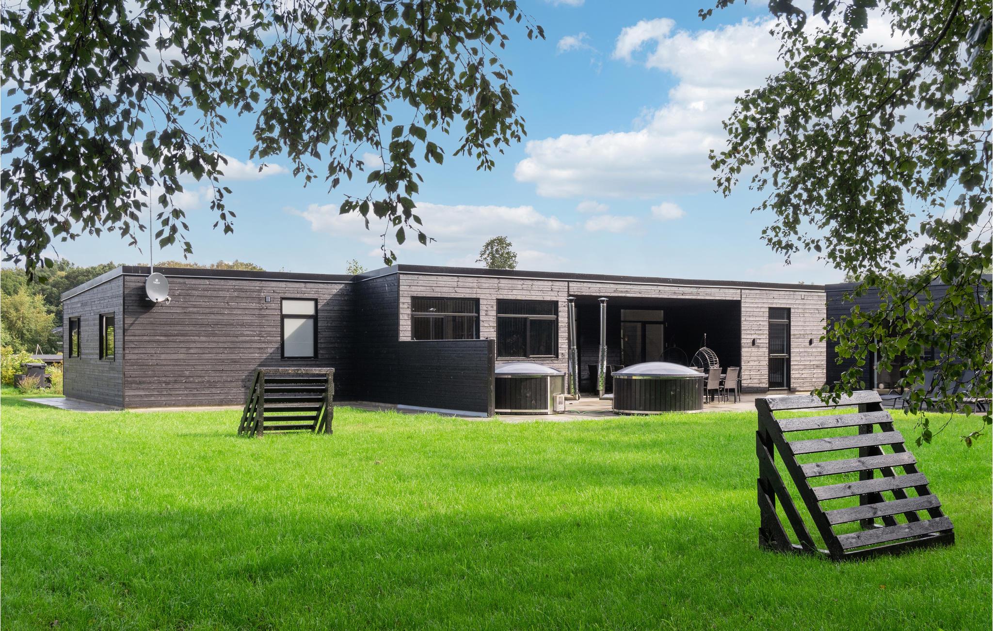 Rummeligt og moderne sommerhus med vildmarksbade og mange gode faciliteter til børn og voksne.
