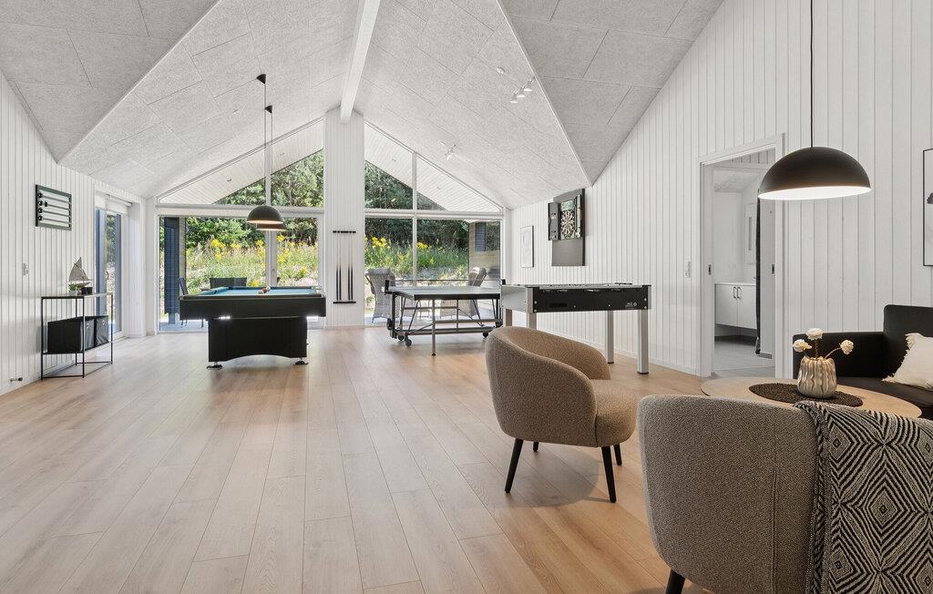 Dette lyse og indbydende hus har alt, hvad I skal bruge til en skøn familieferie. Her kan alle aldersgrupper nemlig finde noget sjovt at fylde dagene med. Tilbring sjove timer i poolen og læn jer tilbage i saunaen. Glæd jer til hyggelige aftener efter dagens eventyr. Slå jer ned ved spisebordet, ryd bordet til brætspil og fyld aftentimerne med gode snakke.