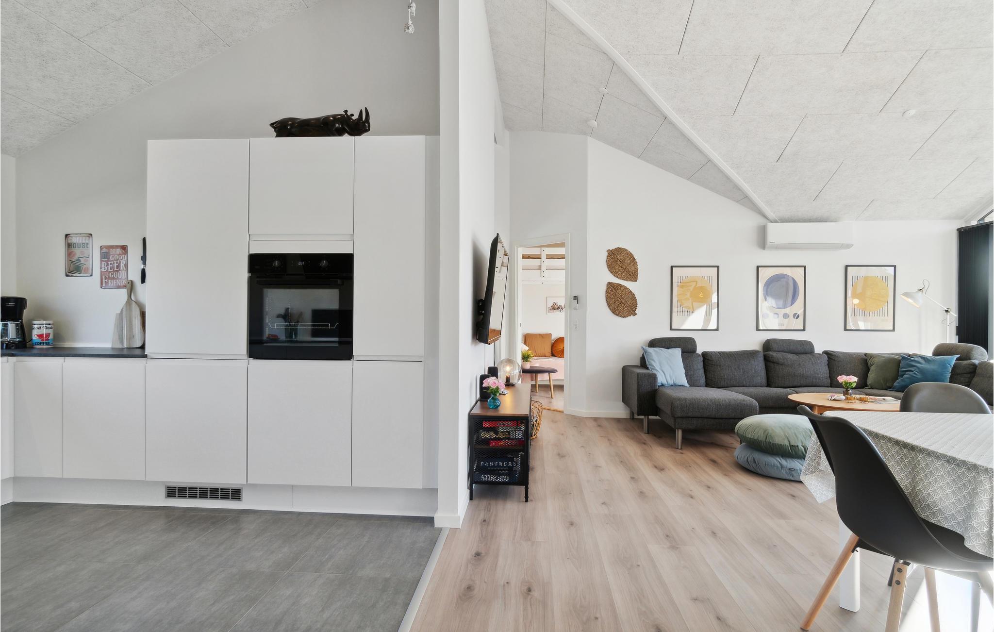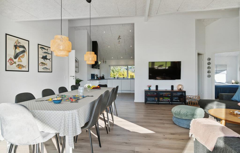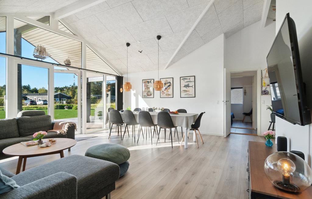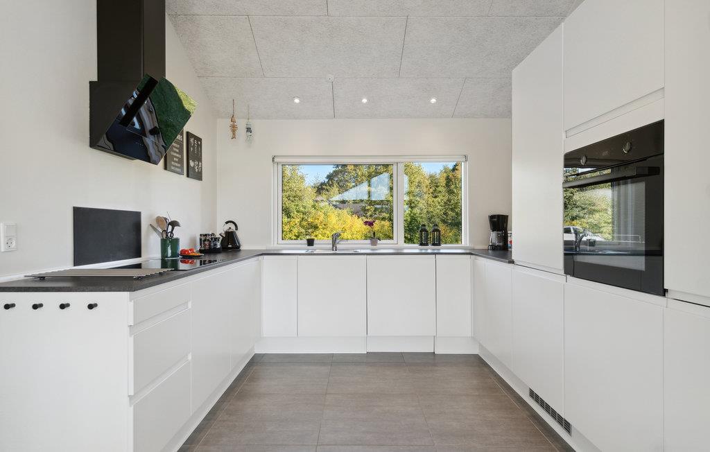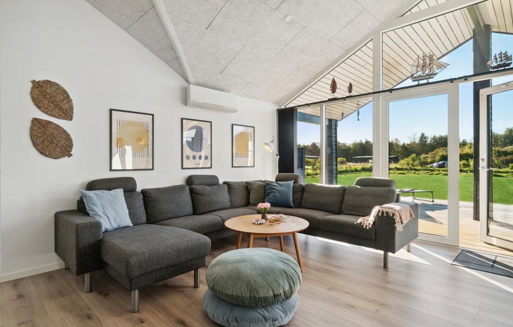 Der venter jer nogle fantastiske feriedage i dette indbydende hus, som ligger i gåafstand fra kysten på Djurslands nordside. Her kan I tilbringe nogle herlige dage i det østjyske og køre et fuldt program - godt afbrudt af pauser i denne flotte oase. De store gulv til loft-vinduer giver jer frit udsyn til de grønne omgivelser, og interiøret er holdt i lyse, rolige farver, så her kan man ikke undgå, at pulsen falder, og skuldrene sænkes.