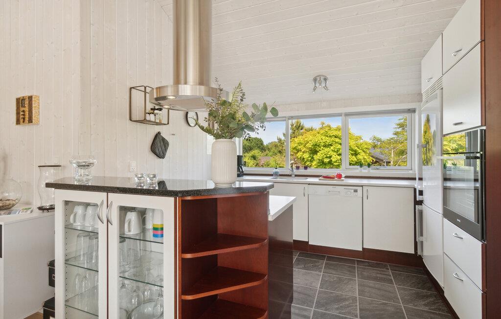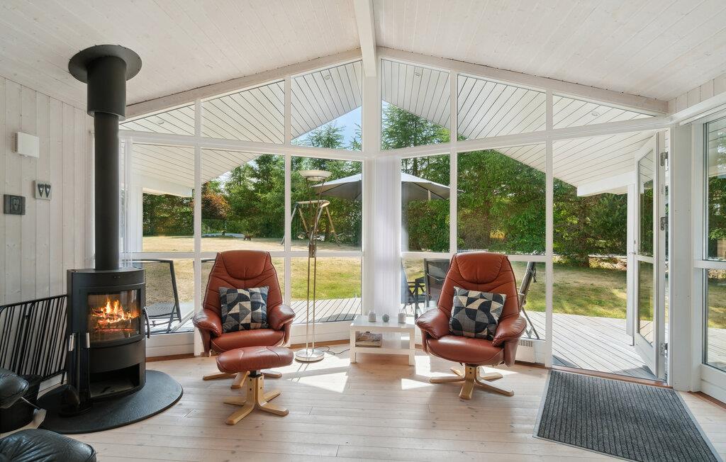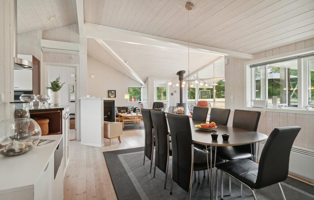 Tag familien under armen og rejs til Djursland, hvor I tæt på den nordlige kyst får base i dette attraktive hus på en stor og ugeneret grund. Huset er virkelig flot indrettet med højt til træloftet, åbent boligkoncept og store vinduespartier, der giver det indre et lyst og luftigt udtryk og en dejlig udsigt til haven. Hvis vejret viser lidt tænder, kan I tænde op i brændeovnen og nyde dens knitrende varme til madlavningen i køkkenet, der er moderne og fuldt udstyret. Efter aftensmaden kan I sætte jer godt til rette i sofaen med snacks og en god film på tv'et, hvis ikke I da hellere vil forkæle jer med lidt lækker wellness i spabadet eller saunaen?