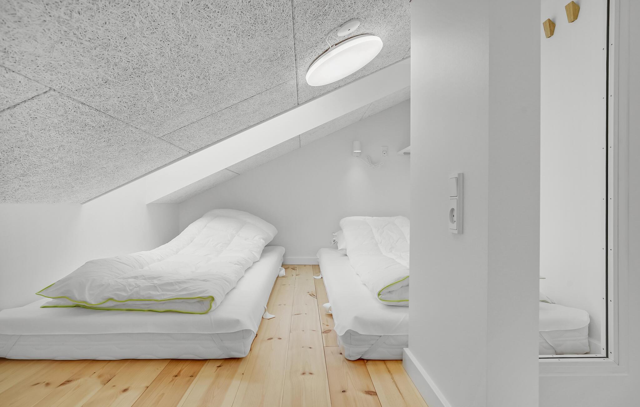 Feriehuset venter sine gæster i Fjellerup Strand i gåafstand fra havet. Her er plads til op til 14 personer, der kan tilbringe en vidunderlig ferie med alle bekvemmeligheder og mange underholdningsmuligheder. Gulv til loft-vinduerne slipper meget lys ind i huset, og der er gulvvarme overalt.