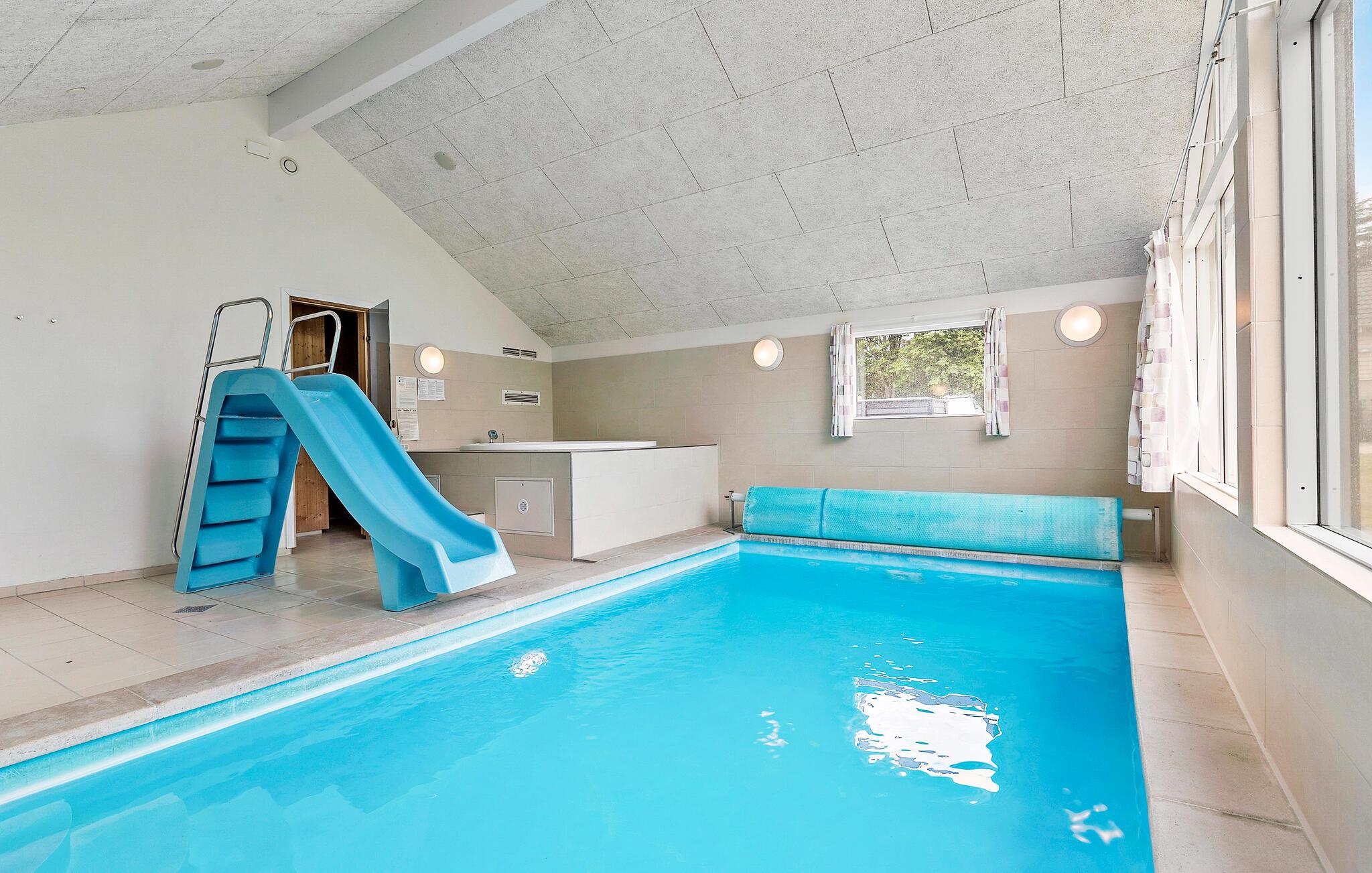 Rummeligt feriehus ved Fjellerup med pool, sauna og aktivitetsrum, perfekt til familier og vennegrupper.