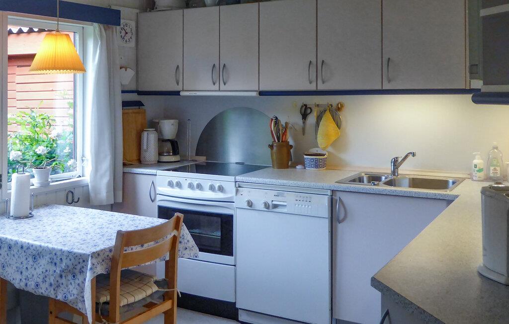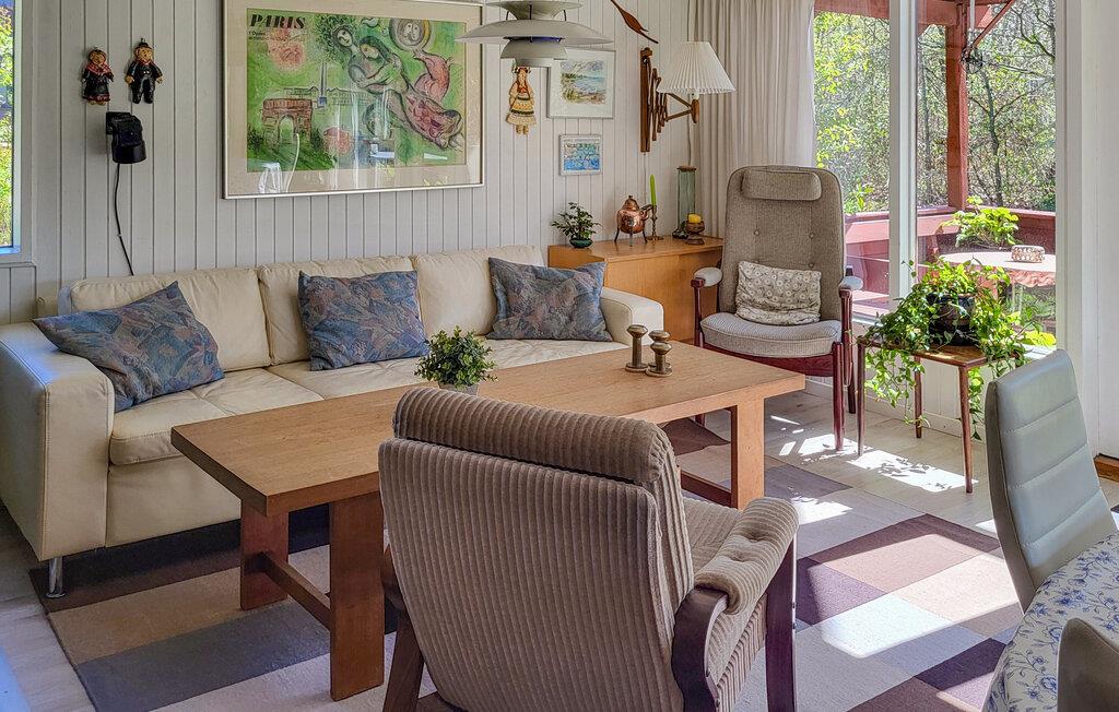 Dette træhus på Djursland er oplagt til en afslappende ferie. Grunden ligger i rolige omgivelser og tilbyder masser af plads til at tilbringe tid sammen udendørs eller slappe af med at læse i skyggen. Husets opholdsstue er hyggeligt indrettet og kombinerer klassiske feriehuskomfort med praktiske faciliteter. Slap af i sofaen, se en film eller læs en bog ved brændeovnen. Brug spiseområdet til fælles måltider eller sociale spilleaftener. I køkkenet kan I nemt tilberede morgenmad og nyde den ved den lille spiseplads ved vinduet.