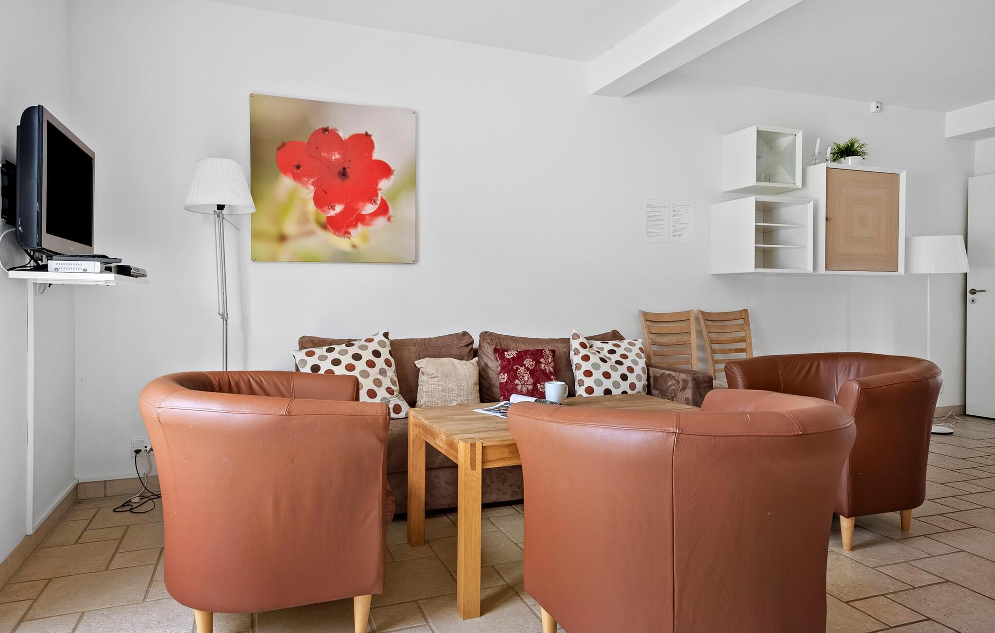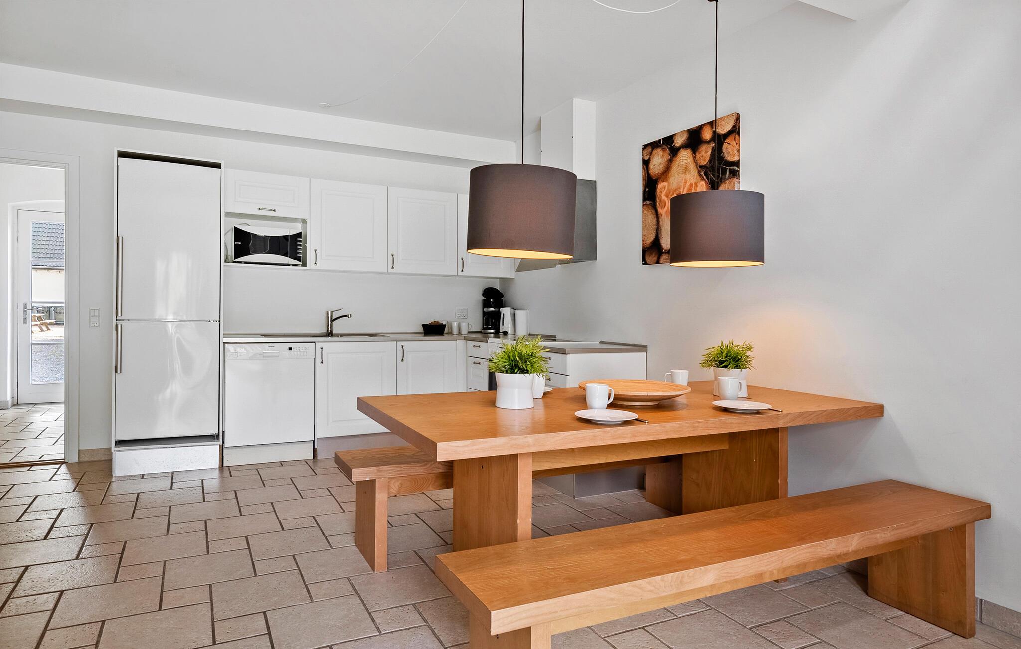 I denne ferielejlighed kan I tilbringe nogle dejlige dage omgivet af Djurslands dejlige, varierede natur. Sæt jer til rette i den behageligt møblerede opholdsstue med komfortable siddepladser og direkte adgang til terrassen. Nyd tiden sammen ved spisebordet eller tilbered jeres måltider i det smukke køkken, der tilbyder moderne apparater og rigelig arbejdsplads. Det lyse interiørdesign skaber en behagelig atmosfære, hvor I straks vil føle jer velkomne.